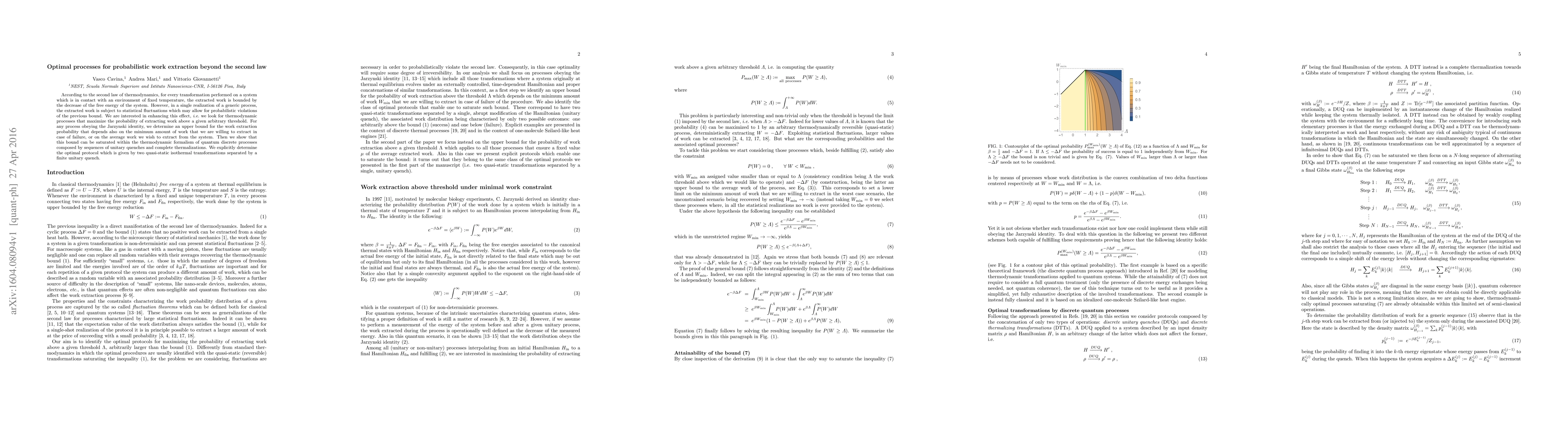 According to the second law of thermodynamics, for every transformation performed on a system which is in contact with an environment of fixed temperature, the extracted work is bounded by the decrease of the free energy of the system. However, in a single realization of a generic process, the extracted work is subject to statistical fluctuations which may allow for probabilistic violations of the previous bound. We are interested in enhancing this effect, i.e. we look for thermodynamic processes that maximize the probability of extracting work above a given arbitrary threshold. For any process obeying the Jarzynski identity, we determine an upper bound for the work extraction probability that depends also on the minimum amount of work that we are willing to extract in case of failure, or on the average work we wish to extract from the system. Then we show that this bound can be saturated within the thermodynamic formalism of quantum discrete processes composed by sequences of unitary quenches and complete thermalizations. We explicitly determine the optimal protocol which is given by two quasi-static isothermal transformations separated by a finite unitary quench.