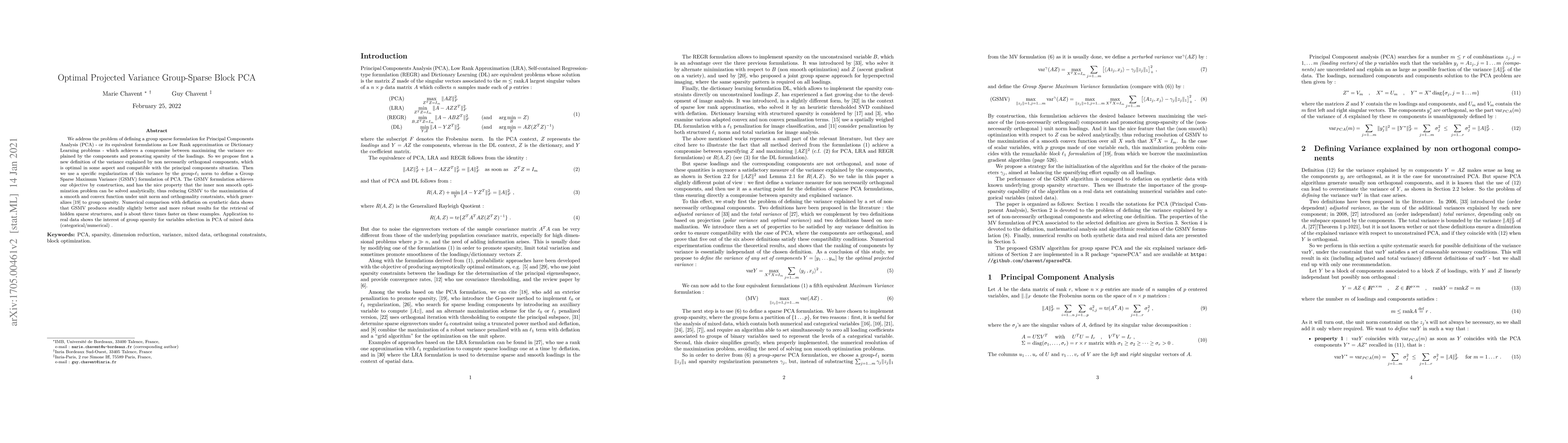 This paper proposes a Group Sparse Maximum Variance (GSMV) formulation for PCA, achieving a balance between maximizing explained variance and promoting loadings sparsity. The GSMV method solves an inner optimization problem analytically, leading to faster and more robust results for identifying sparse structures compared to traditional methods.