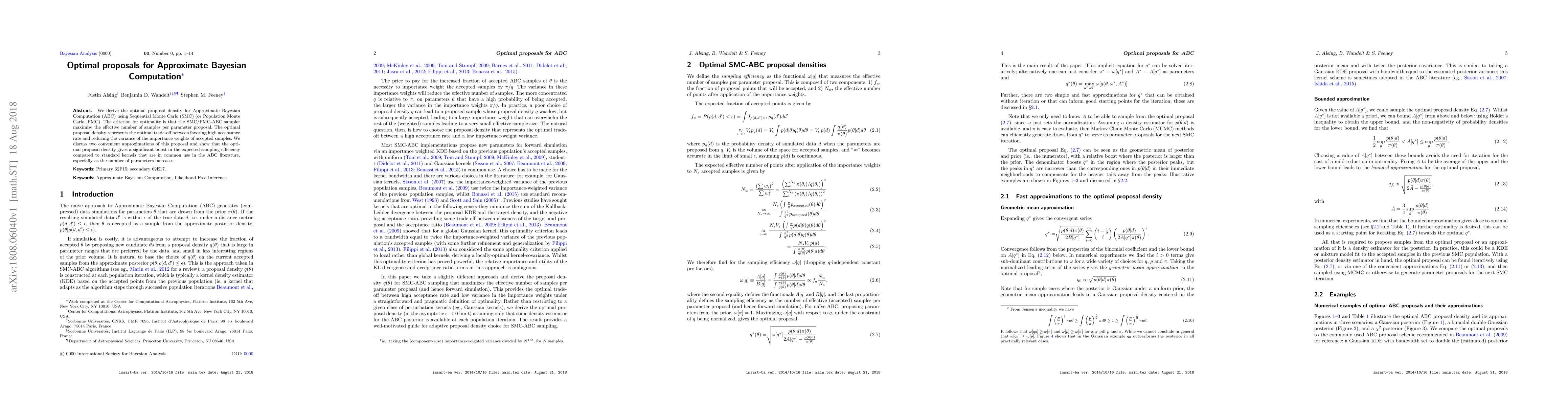 The paper derives an optimal proposal density for Approximate Bayesian Computation (ABC) that balances acceptance rate and variance of importance weights, leading to significant boosts in sampling efficiency, especially with increasing numbers of parameters.