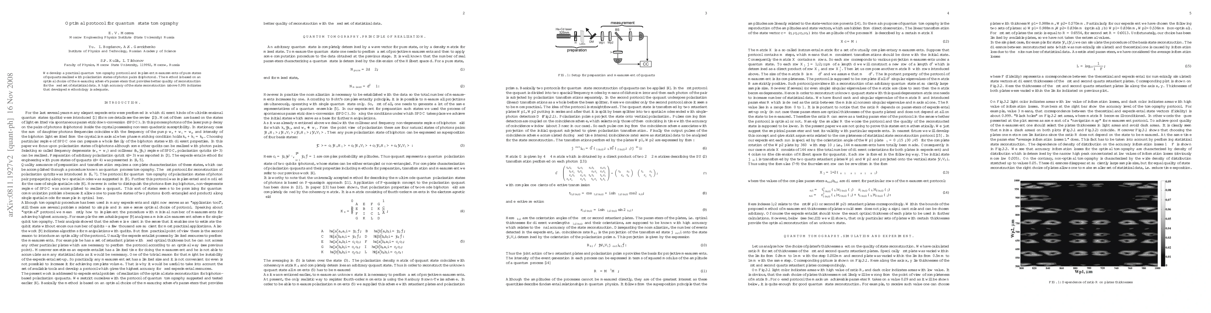 This paper presents a practical quantum tomography protocol for reconstructing pure states of ququarts using photon pairs, optimizing measurement parameters for improved reconstruction accuracy, achieving over 99% accuracy. The methodology demonstrates high adequacy for quantum state tomography.