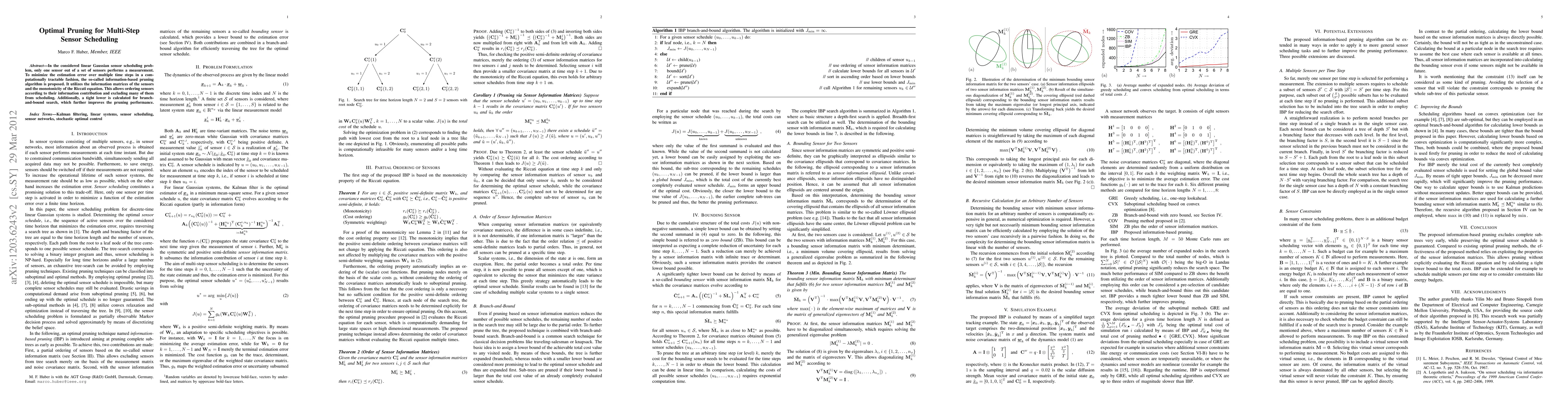 This paper proposes an information-based pruning algorithm for minimizing estimation error in multi-step sensor scheduling, leveraging sensor information matrices and the Riccati equation's monotonicity to efficiently exclude less informative sensors. A tight lower bound for branch-and-bound search enhances the pruning performance.