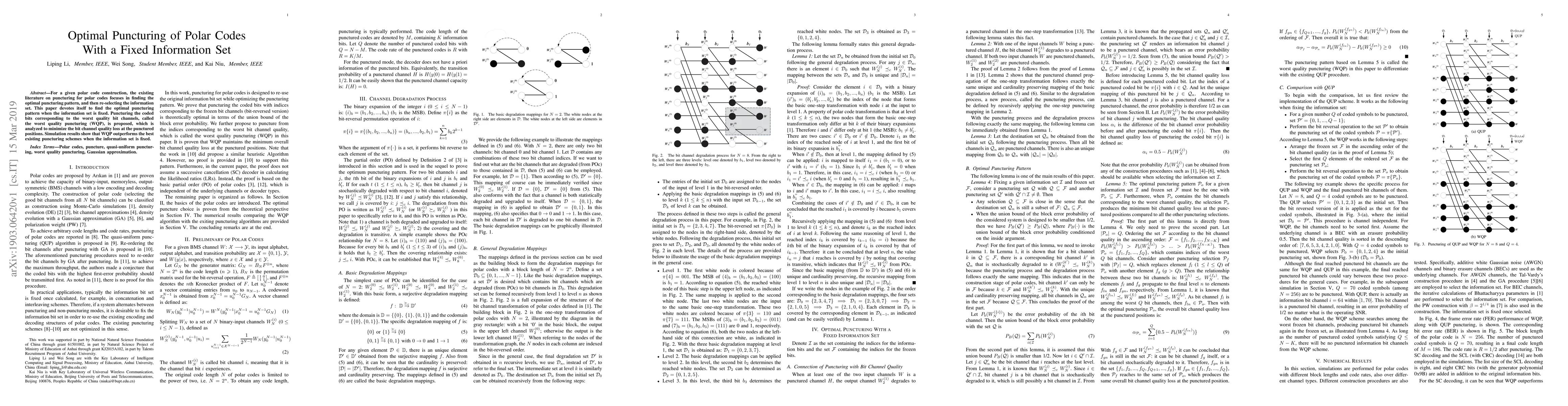 This paper proposes the worst quality puncturing (WQP) method to find the optimal puncturing pattern when the information set is fixed, aiming to minimize bit channel quality loss. Simulation results demonstrate that WQP outperforms existing puncturing schemes under these conditions.