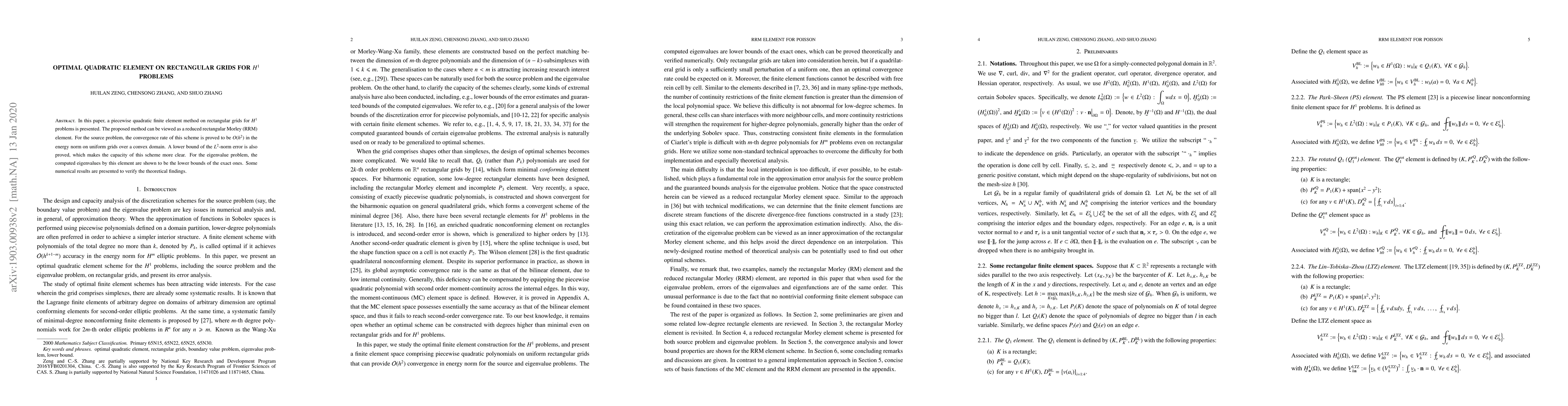 This paper introduces a piecewise quadratic finite element method on rectangular grids for $H^1$ problems, demonstrating a $O(h^2)$ convergence rate in the energy norm and proving a lower bound for the $L^2$-norm error. It also shows that numerical eigenvalues are lower bounds for the exact eigenvalues, with numerical results validating the method's potential.