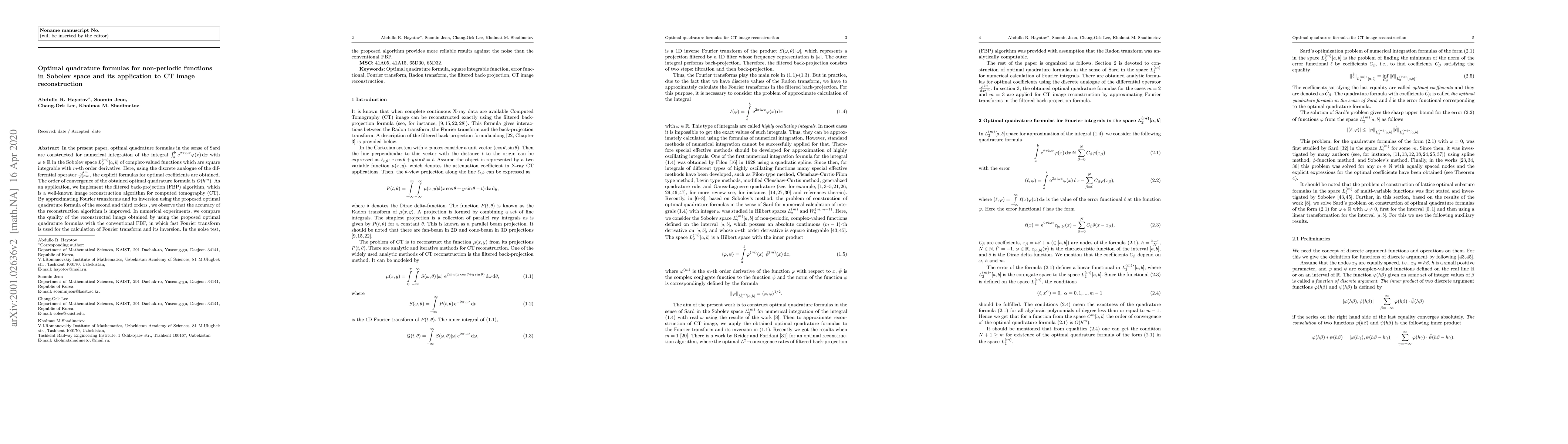 This paper constructs optimal quadrature formulas for numerical integration in Sobolev space, achieving convergence of $O(h^m)$. The method is applied to improve the filtered back-projection algorithm for CT image reconstruction, demonstrating better accuracy and noise resistance compared to conventional methods.