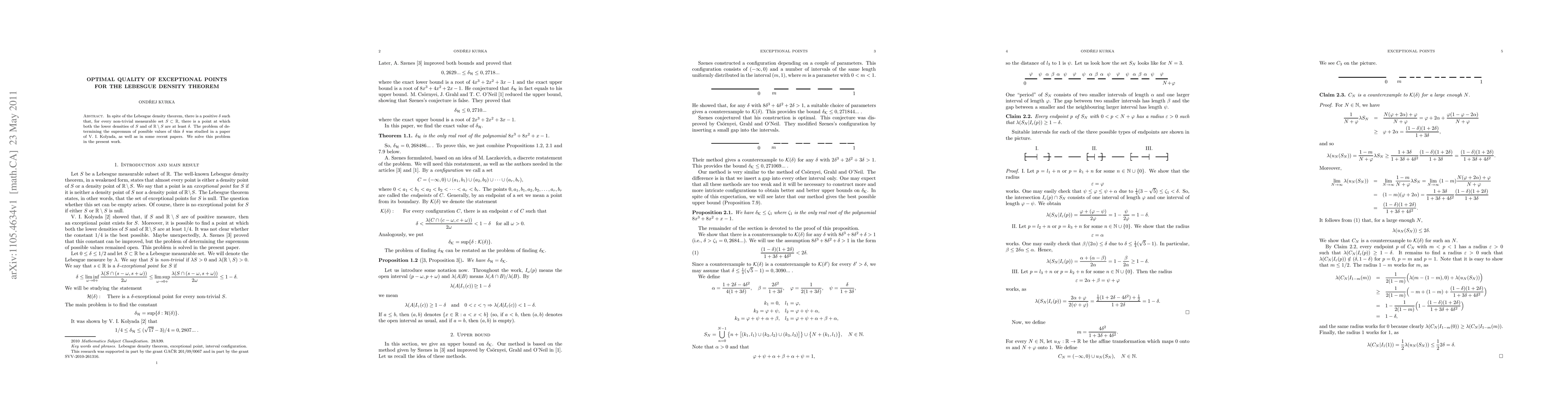 Researchers solved a problem in Lebesgue density theorem by finding an optimal quality of exceptional points that applies to all non-trivial measurable sets, providing insight into the relationship between set properties and their complements.