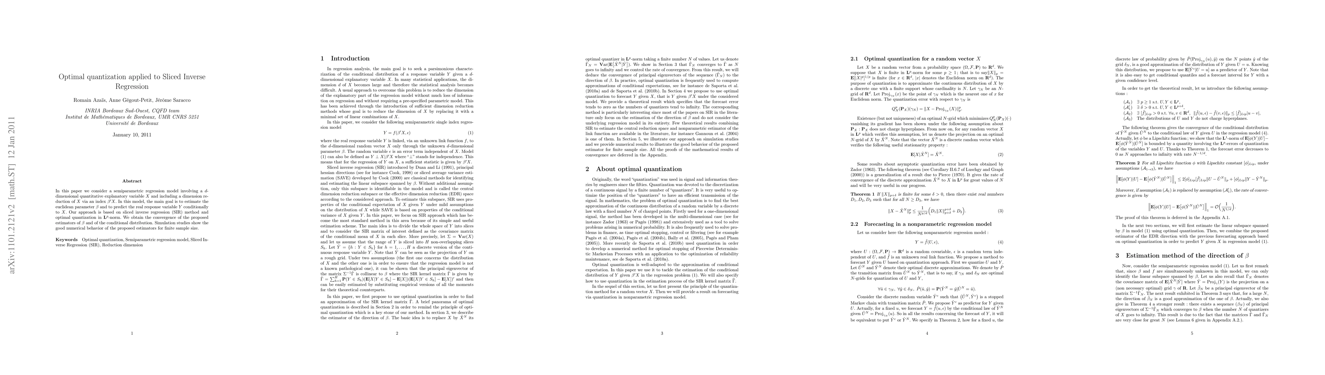 This paper proposes a method combining sliced inverse regression and optimal quantization to estimate the Euclidean parameter $\beta$ in a semiparametric regression model. Simulation studies demonstrate the effectiveness of the proposed estimators for finite sample sizes.