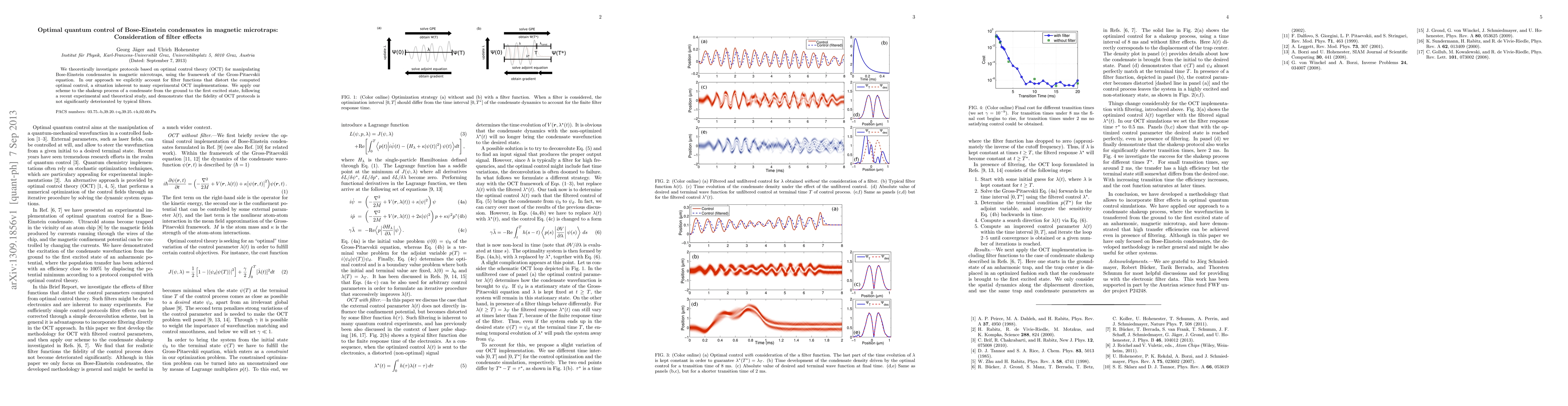 This paper investigates optimal control protocols for manipulating Bose-Einstein condensates in magnetic microtraps, considering the effects of filter functions that distort control signals. Despite the presence of such filters, the fidelity of the control protocols remains largely unaffected.