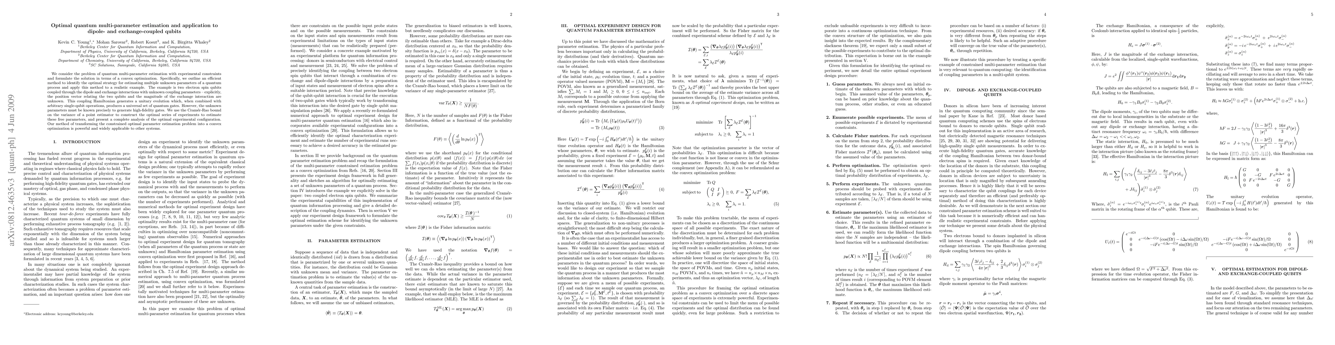 This paper proposes an efficient method for optimal quantum multi-parameter estimation under experimental constraints, formulated as a convex optimization problem. It applies this method to estimate unknown coupling parameters in dipole- and exchange-coupled electron spin qubits, demonstrating its applicability to generating high-fidelity quantum gates.