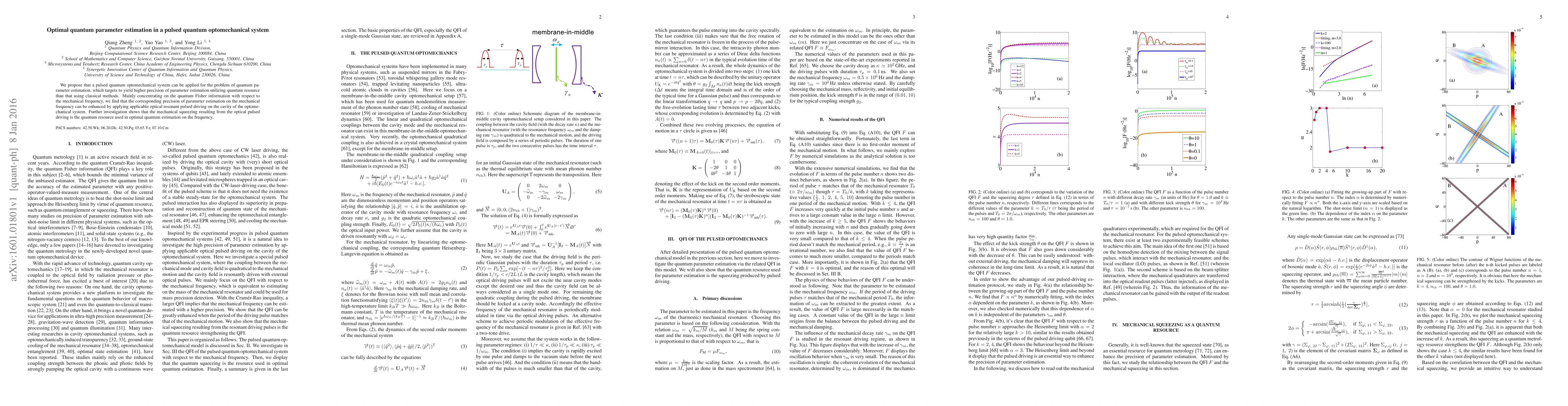 This paper proposes using a pulsed quantum optomechanical system for enhanced quantum parameter estimation, achieving higher precision than classical methods. The study finds that optimal estimation precision for the mechanical frequency is achieved through optical resonant pulsed driving, utilizing mechanical squeezing as the quantum resource.