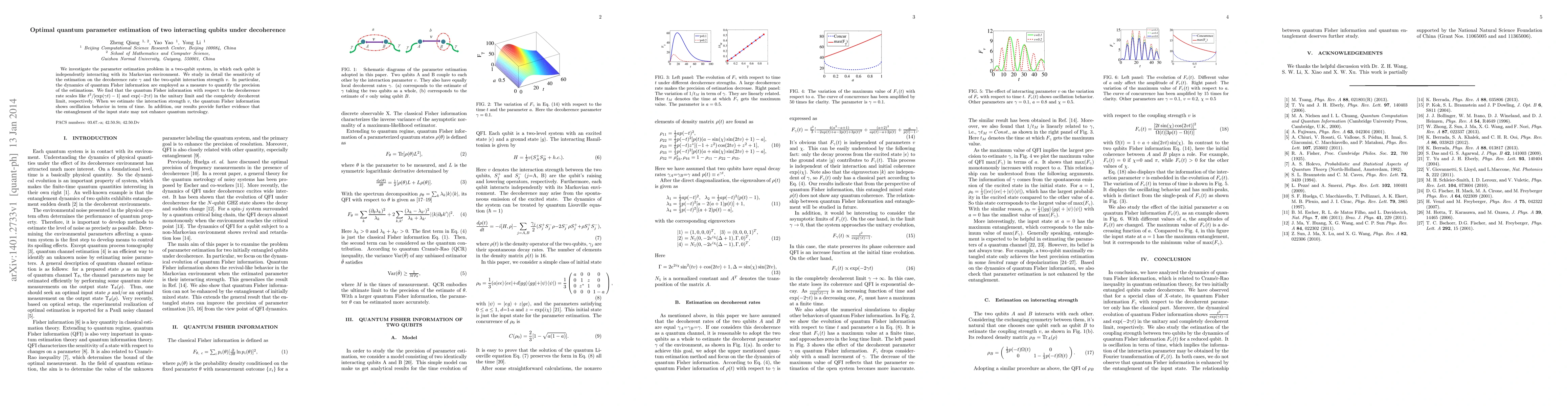 We investigate the parameter estimation problem in a two-qubit system, in which each qubit is independently interacting with its Markovian environment. We study in detail the sensitivity of the estimation on the decoherence rate $\gamma$ and the two-qubit interaction strength $v$. In particular, the dynamics of quantum Fisher information are employed as a measure to quantify the precision of the estimations. We find that the quantum Fisher information with respect to the decoherence rate scales like $t^2/[\exp(\gamma t)-1]$ and $\exp(-2\gamma t)$ in the unitary limit and the completely decoherent limit, respectively. When we estimate the interaction strength $v$, the quantum Fisher information shows oscillation behavior in term of time. In addition, our results provide further evidence that the entanglement of the input state may not enhance quantum metrology.