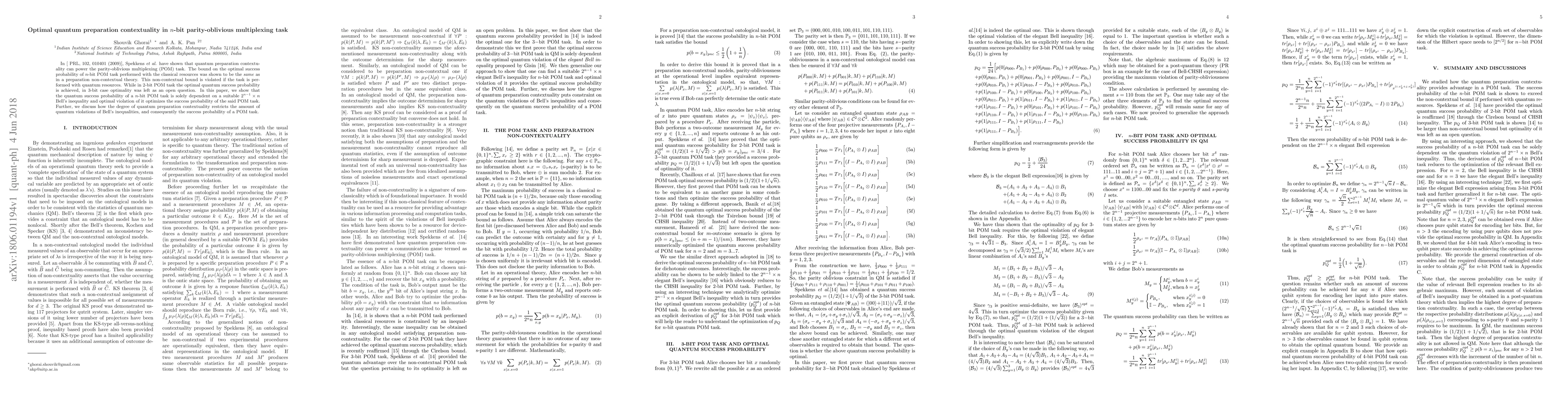 In [ PRL, 102, 010401 (2009)], Spekkens et al., have shown that quantum preparation contextuality can power the parity-oblivious multiplexing (POM) task. The bound on the optimal success probability of $n$-bit POM task performed with the classical resources was shown to be the \textit{same} as in a preparation non-contextual theory. This non-contextual bound is violated if the task is performed with quantum resources. While in $2$-bit POM task the optimal quantum success probability is achieved, in 3-bit case optimality was left as an open question. In this paper, we show that the quantum success probability of a $n$-bit POM task is solely dependent on a suitable $2^{n-1}\times n$ Bell's inequality and optimal violation of it optimizes the success probability of the said POM task. Further, we discuss how the degree of quantum preparation contextuality restricts the amount of quantum violations of Bell's inequalities, and consequently the success probability of a POM task.