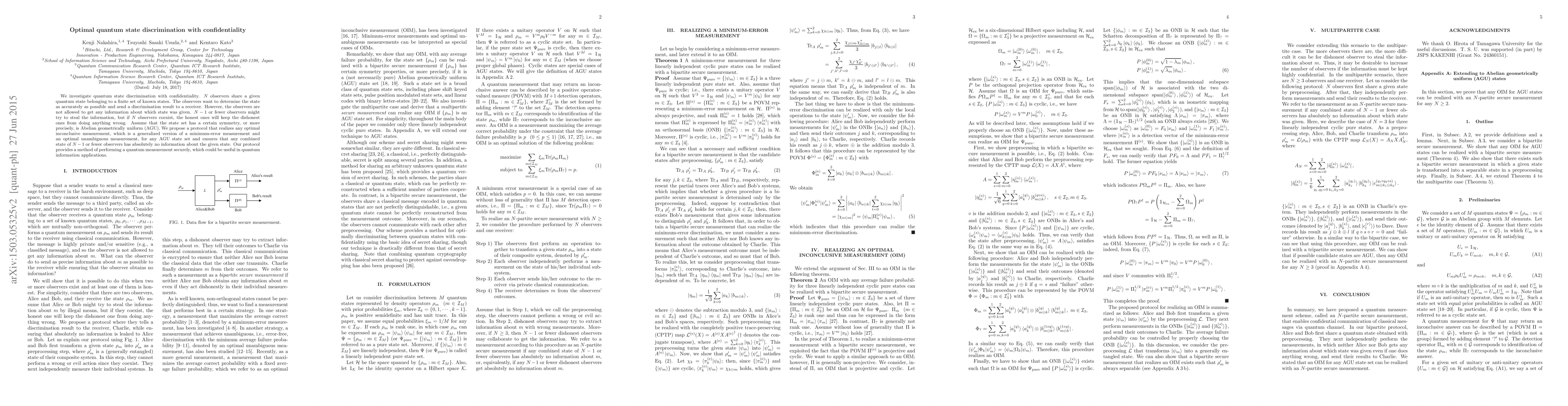 Researchers propose a protocol for secure quantum state discrimination with confidentiality among N observers, ensuring that dishonest observers cannot gain information about the state. This protocol enables optimal inconclusive measurement and has potential applications in quantum information processing.