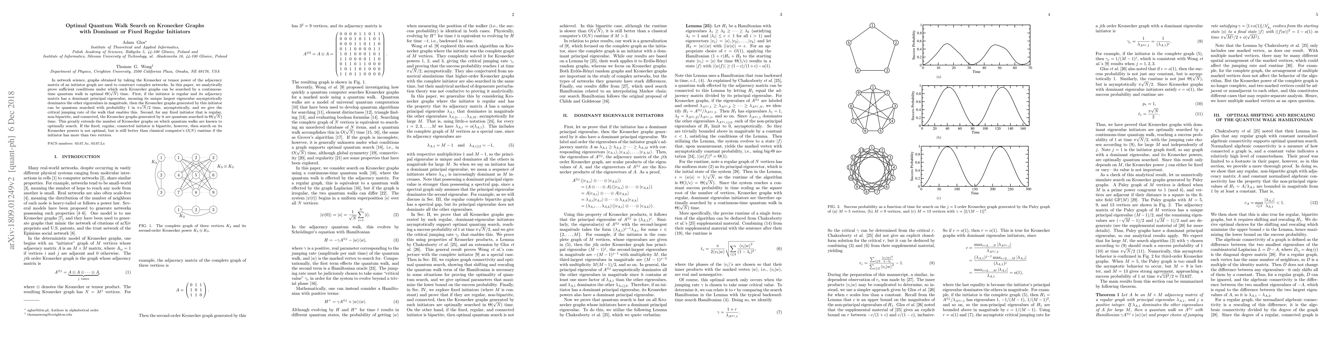 Researchers found that quantum walks can efficiently search certain types of complex networks, known as Kronecker graphs, in optimal time, with conditions depending on the initiator graph's regularity and eigenvalues.