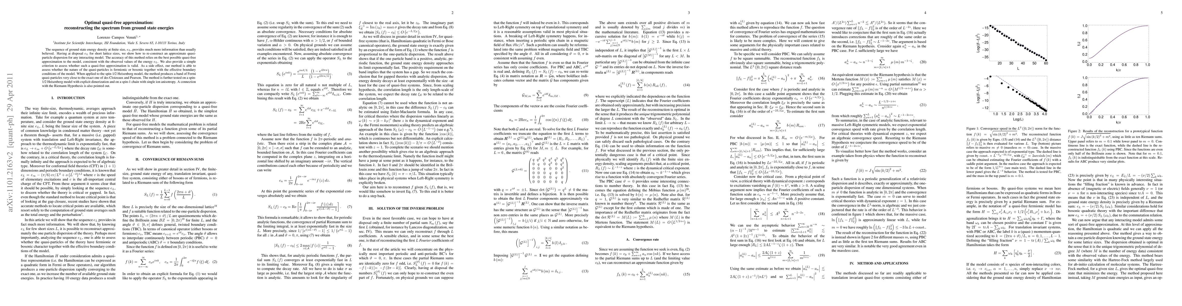 This research introduces a method to reconstruct approximate quasi-particle dispersion from ground state energies in interacting models. The approach leverages short lattice size energy data and validates quasi-free approximations, also determining quasi-particle nature (fermionic/bosonic) and effective boundary conditions. The method is successfully applied to the spin-1/2 Heisenberg model, a dimerized spin-1/2 model, and a spin-1 chain with single ion anisotropy, with surprising links to the Riemann Hypothesis.