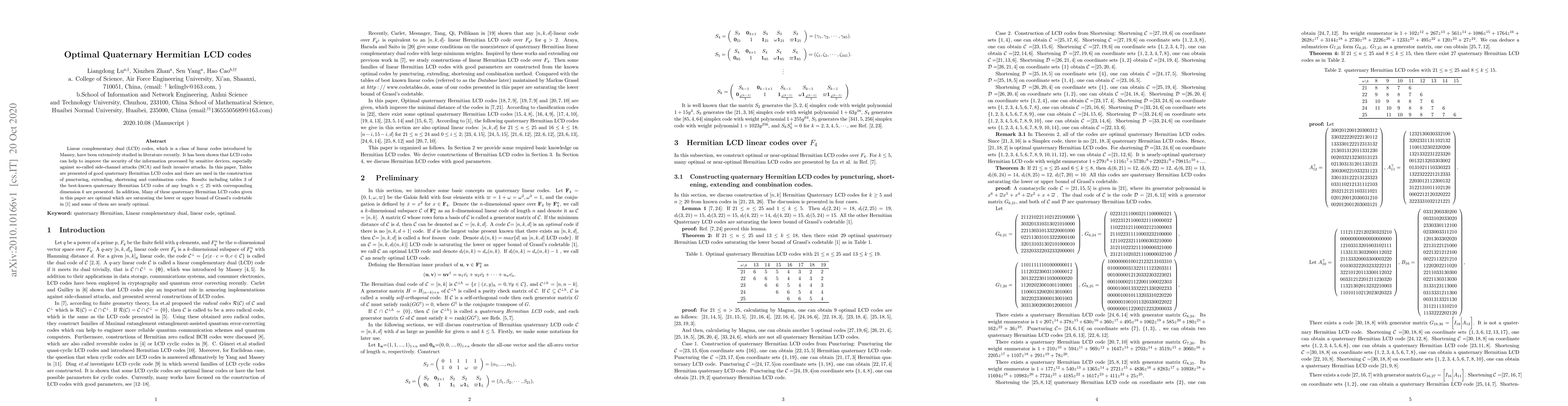 This paper presents tables of optimal quaternary Hermitian linear complementary dual (LCD) codes up to length 25, showing constructions via puncturing, extending, shortening, and combination methods. Many of these codes are optimal or nearly optimal, saturating or nearly saturating the bounds in Grassl's codetable.