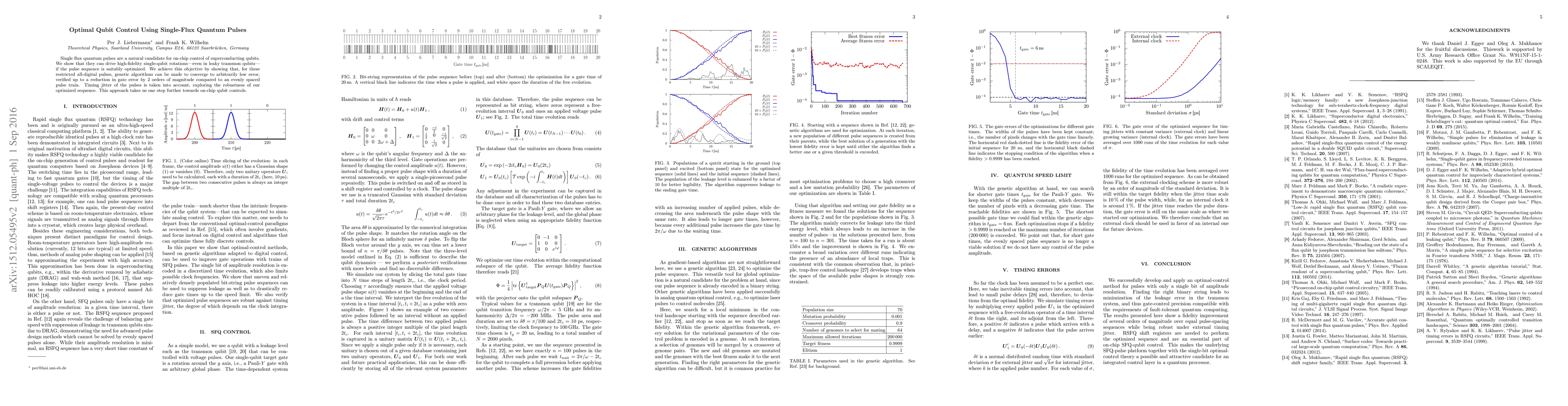 This research distinguishes itself by applying genetic algorithms to optimize SFQ pulse sequences for qubit control, achieving significant fidelity improvements over conventional evenly spaced pulse trains, and demonstrating the feasibility of on-chip control using SFQ technology.