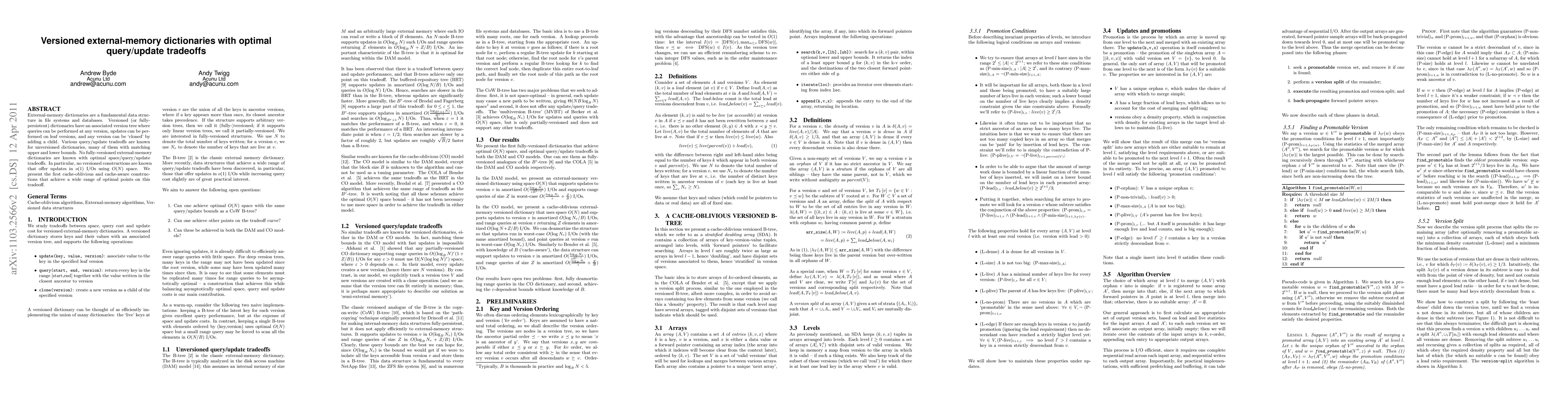 This paper presents the first cache-oblivious and cache-aware constructions for fully-persistent external-memory dictionaries, achieving optimal tradeoffs between space, query, and update operations. It addresses the lack of known versioned constructions offering optimal updates in minimal I/Os while maintaining O(N) space.