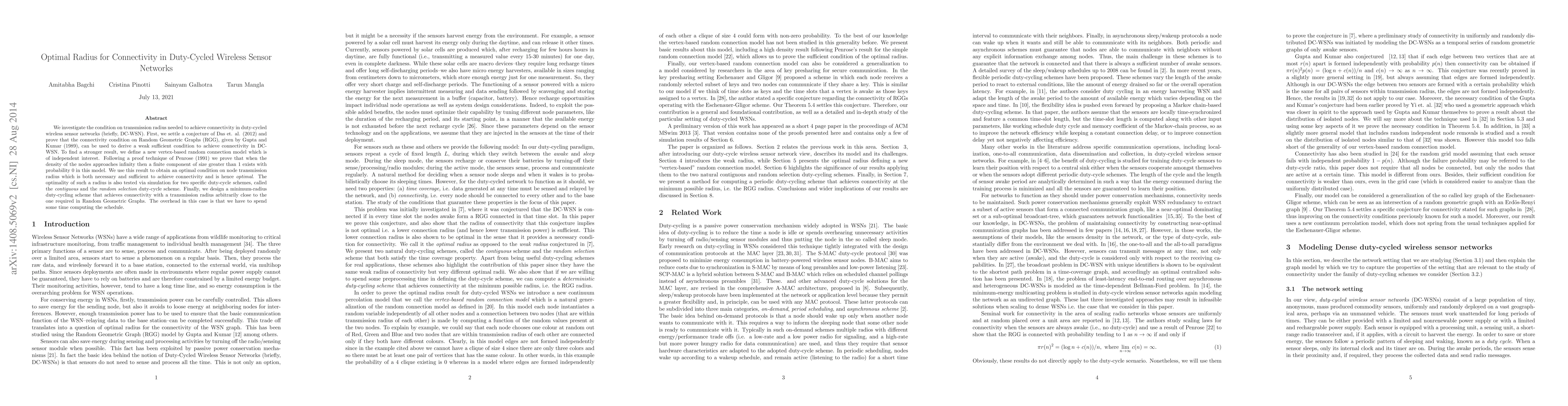 This paper establishes an optimal transmission radius for achieving connectivity in duty-cycled wireless sensor networks, proving a conjecture and introducing a new vertex-based random connection model. Simulation results confirm the optimality of the derived radius under specific duty-cycle schemes.