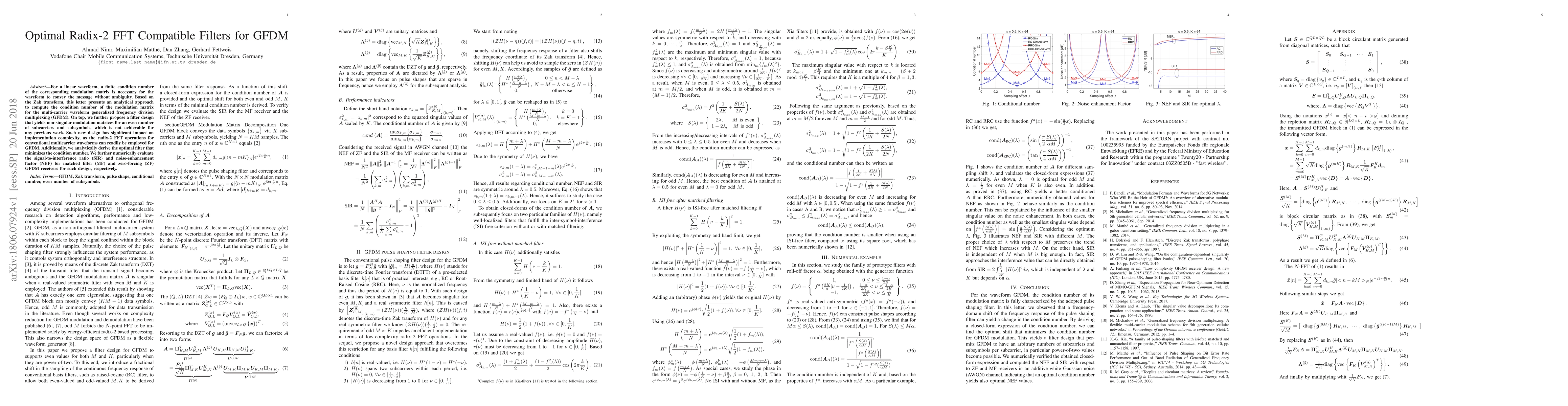 This paper presents an analytical method to compute the condition number of modulation matrices for GFDM, and proposes a novel filter design that ensures non-singular matrices, enabling optimal radix-2 FFT compatibility. The optimal filter is derived to minimize the condition number, enhancing signal-to-interference ratio and noise-enhancement factor for GFDM receivers.