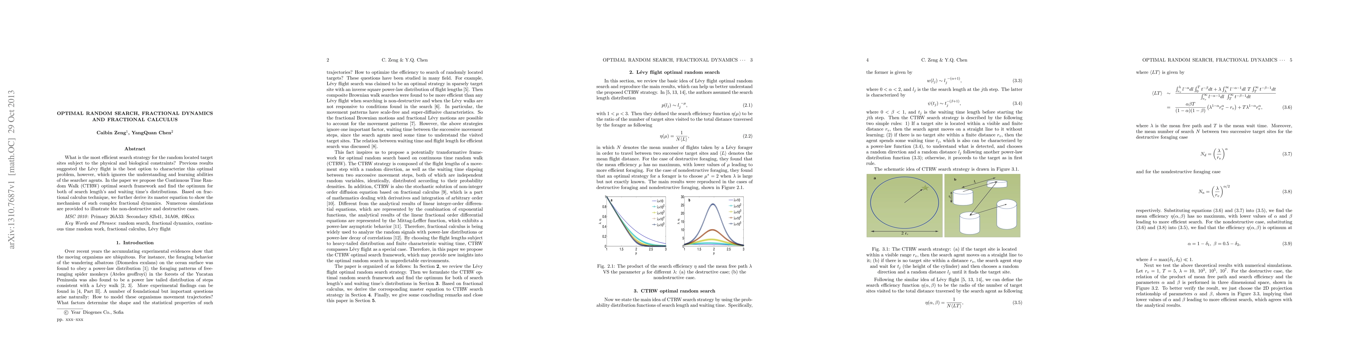 What is the most efficient search strategy for the random located target sites subject to the physical and biological constraints? Previous results suggested the L\'evy flight is the best option to characterize this optimal problem, however, which ignores the understanding and learning abilities of the searcher agents. In the paper we propose the Continuous Time Random Walk (CTRW) optimal search framework and find the optimum for both of search length's and waiting time's distributions. Based on fractional calculus technique, we further derive its master equation to show the mechanism of such complex fractional dynamics. Numerous simulations are provided to illustrate the non-destructive and destructive cases.