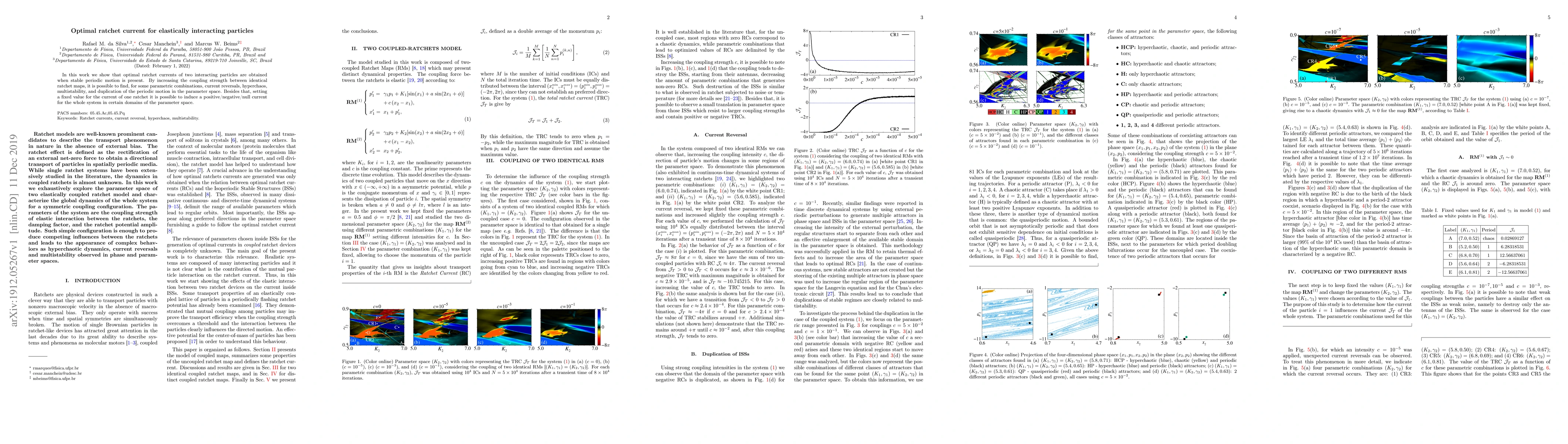This research demonstrates that optimal ratchet currents for two interacting particles are achieved under stable periodic motion. By adjusting the coupling strength, complex behaviors such as current reversals, hyperchaos, and multistability can emerge, allowing for the induction of positive, negative, or null currents in specific parameter domains.
