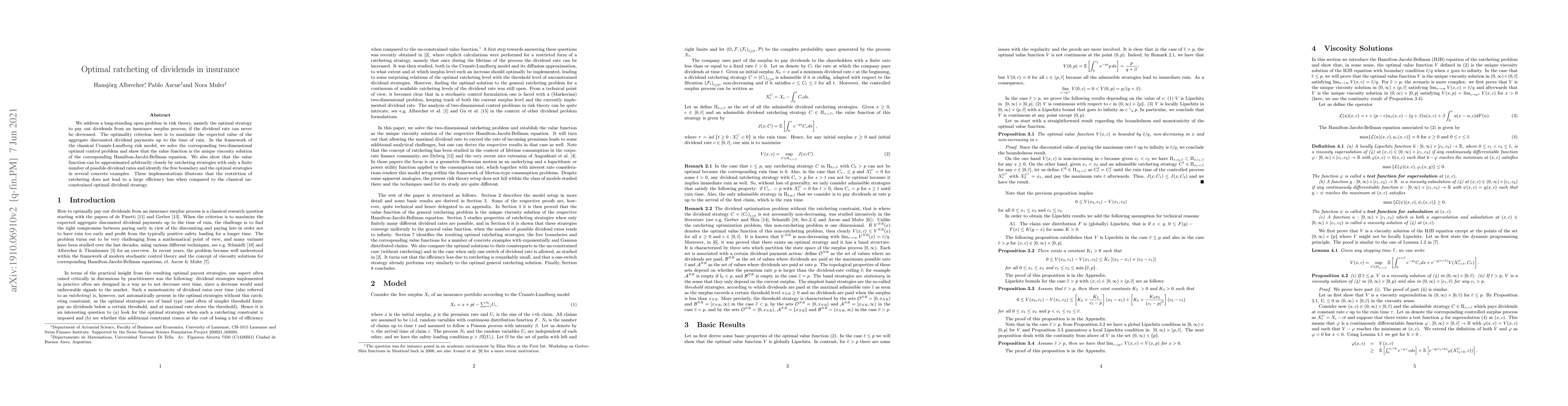We address a long-standing open problem in risk theory, namely the optimal strategy to pay out dividends from an insurance surplus process, if the dividend rate can never be decreased. The optimality criterion here is to maximize the expected value of the aggregate discounted dividend payments up to the time of ruin. In the framework of the classical Cram\'{e}r-Lundberg risk model, we solve the corresponding two-dimensional optimal control problem and show that the value function is the unique viscosity solution of the corresponding Hamilton-Jacobi-Bellman equation. We also show that the value function can be approximated arbitrarily closely by ratcheting strategies with only a finite number of possible dividend rates and identify the free boundary and the optimal strategies in several concrete examples. These implementations illustrate that the restriction of ratcheting does not lead to a large efficiency loss when compared to the classical un-constrained optimal dividend strategy.