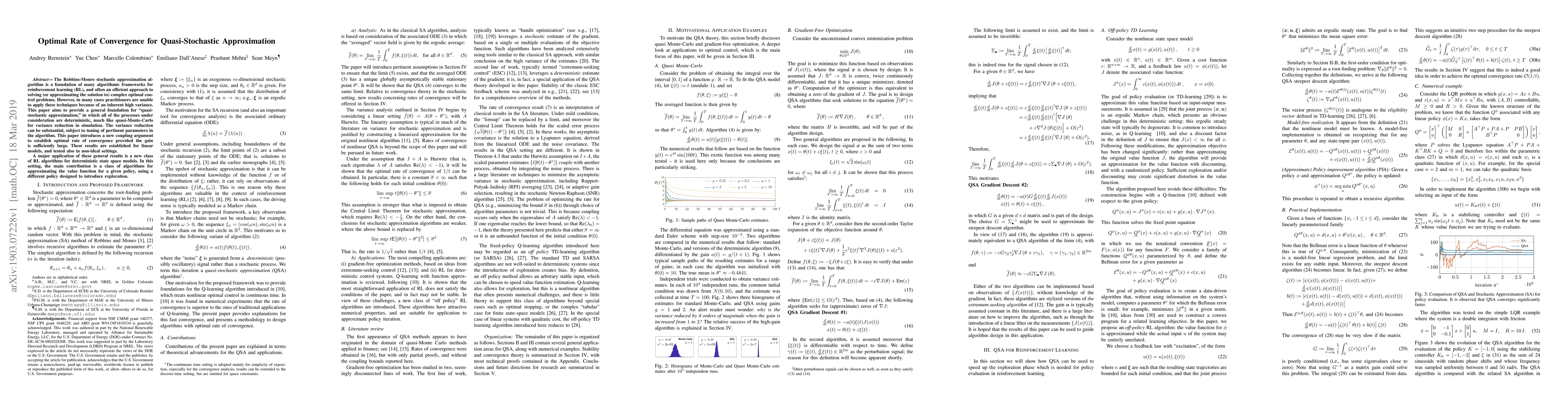 This paper develops a quasi-stochastic approximation method to reduce variance in reinforcement learning algorithms, introducing a new coupling argument for optimal convergence rates under certain conditions. The method is applied to develop new reinforcement learning algorithms for deterministic state space models.