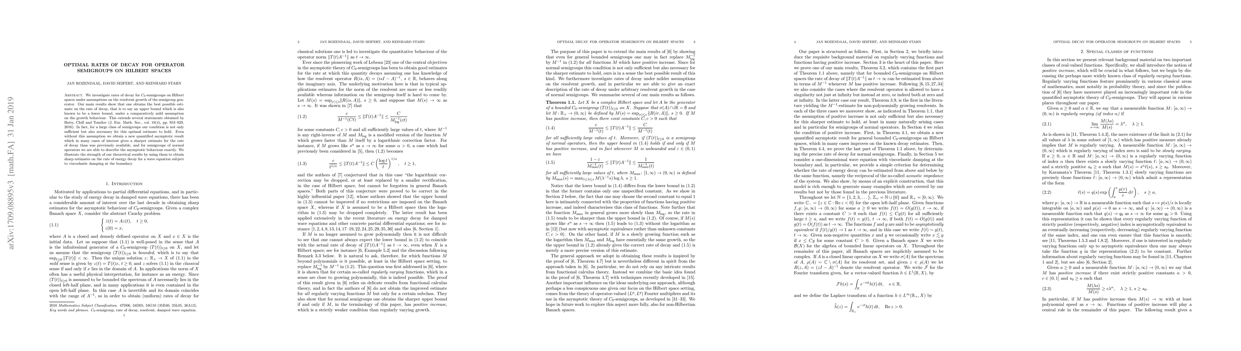 We investigate rates of decay for $C_0$-semigroups on Hilbert spaces under assumptions on the resolvent growth of the semigroup generator. Our main results show that one obtains the best possible estimate on the rate of decay, that is to say an upper bound which is also known to be a lower bound, under a comparatively mild assumption on the growth behaviour. This extends several statements obtained by Batty, Chill and Tomilov (J. Eur. Math. Soc., vol. 18(4), pp. 853-929, 2016). In fact, for a large class of semigroups our condition is not only sufficient but also necessary for this optimal estimate to hold. Even without this assumption we obtain a new quantified asymptotic result which in many cases of interest gives a sharper estimate for the rate of decay than was previously available, and for semigroups of normal operators we are able to describe the asymptotic behaviour exactly. We illustrate the strength of our theoretical results by using them to obtain sharp estimates on the rate of energy decay for a wave equation subject to viscoelastic damping at the boundary.