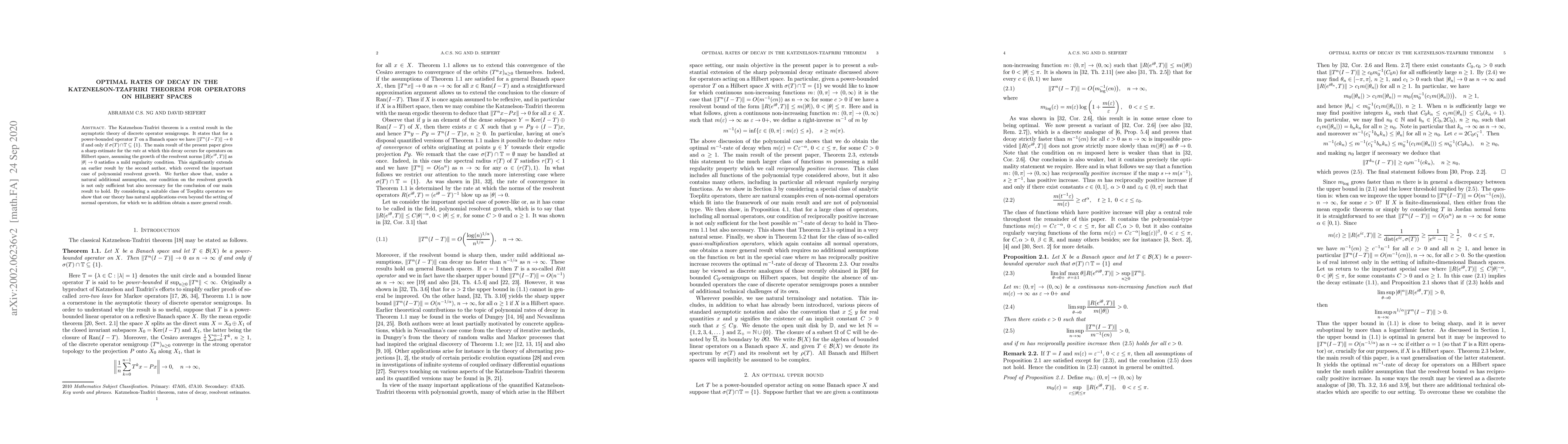 The Katznelson-Tzafriri theorem is a central result in the asymptotic theory of discrete operator semigroups. It states that for a power-bounded operator $T$ on a Banach space we have $||T^n(I-T)\|\to0$ if and only if $\sigma(T)\cap\mathbb{T}\subseteq\{1\}$. The main result of the present paper gives a sharp estimate for the rate at which this decay occurs for operators on Hilbert space, assuming the growth of the resolvent norms $\|R(e^{i\theta},T)\|$ as $|\theta|\to0$ satisfies a mild regularity condition. This significantly extends an earlier result by the second author, which covered the important case of polynomial resolvent growth. We further show that, under a natural additional assumption, our condition on the resolvent growth is not only sufficient but also necessary for the conclusion of our main result to hold. By considering a suitable class of Toeplitz operators we show that our theory has natural applications even beyond the setting of normal operators, for which we in addition obtain a more general result.