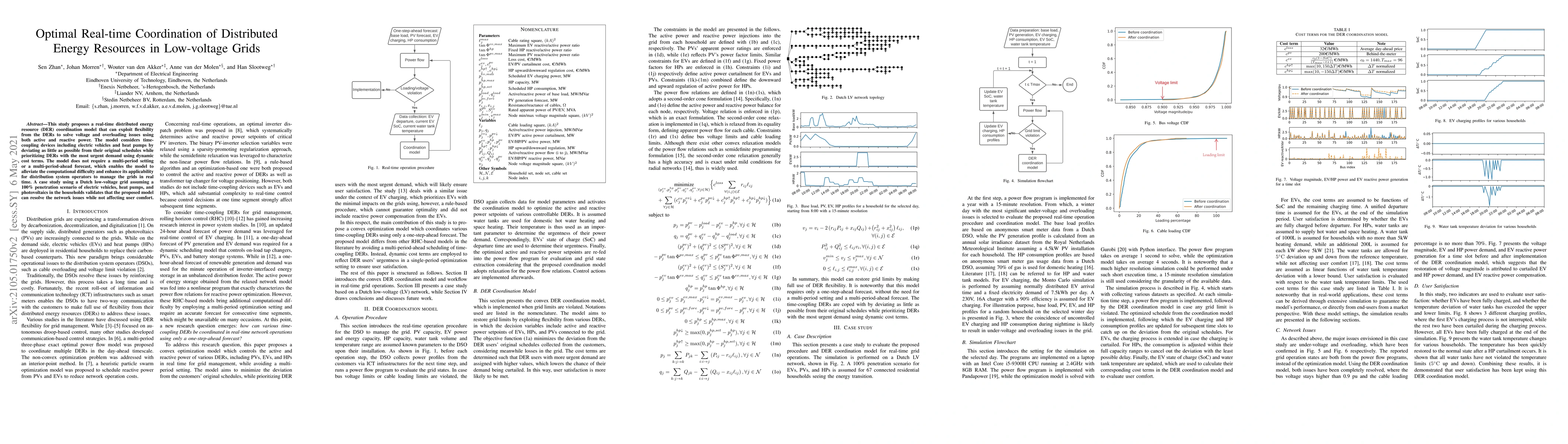 This study introduces a real-time coordination model for distributed energy resources to address voltage and overloading issues in low-voltage grids, optimizing active and reactive power while minimally disrupting time-coupled devices. The model enhances real-time grid management without multi-period forecasts, validated through a Dutch low-voltage grid case study with 100% penetration of electric vehicles, heat pumps, and PVs.