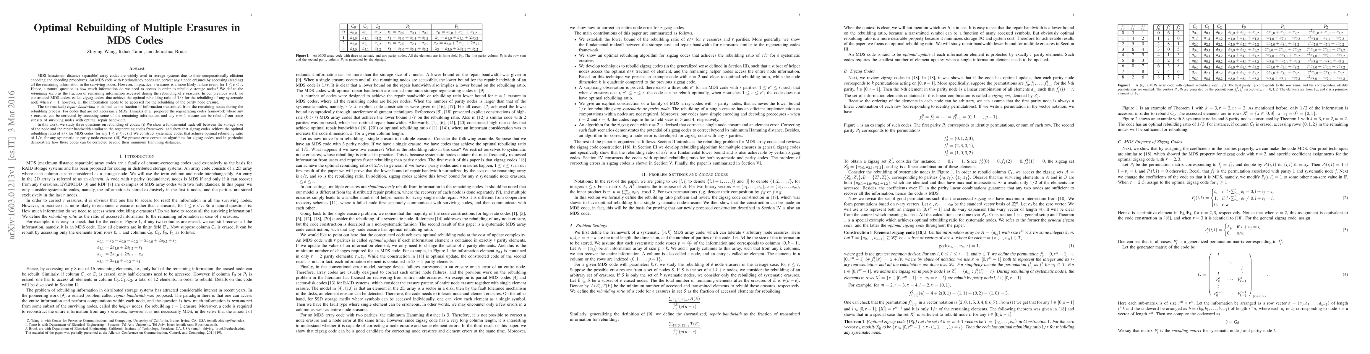 This paper investigates optimal rebuilding strategies for Multiple Erasures in MDS array codes, focusing on minimizing information access during node erasure repair. It demonstrates a trade-off between storage size and repair bandwidth, achieving the optimal rebuilding ratio of $e/r$ for MDS codes, and constructs systematic codes for optimal rebuilding ratios.