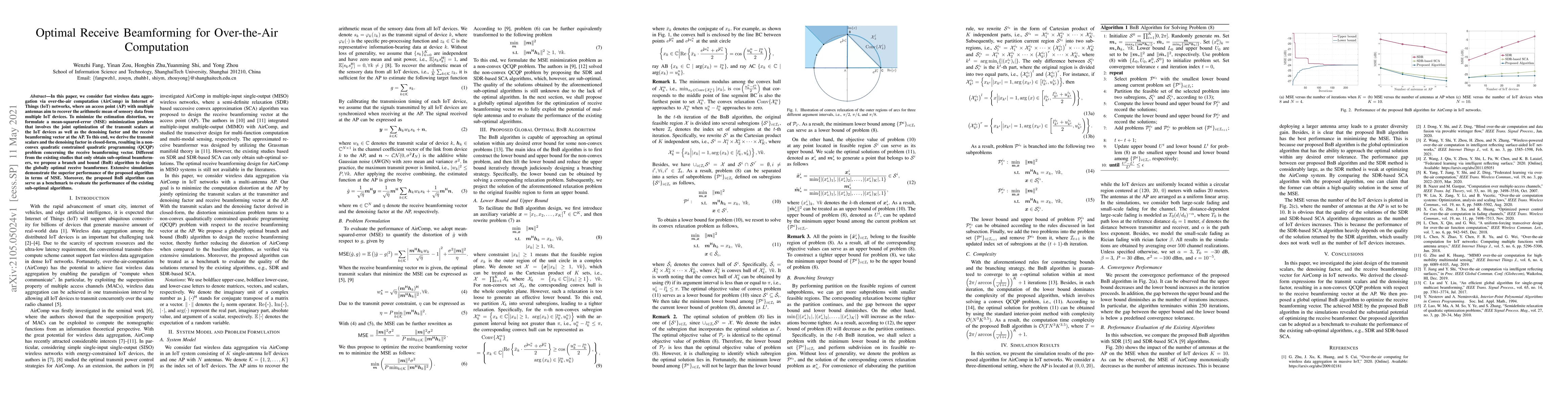 This paper proposes an optimal receive beamforming method for wireless data aggregation in IoT networks using over-the-air computation. It introduces a branch and bound algorithm to achieve globally optimal beamforming, outperforming existing sub-optimal methods in terms of mean-squared-error, and serves as a benchmark for evaluating other algorithms.