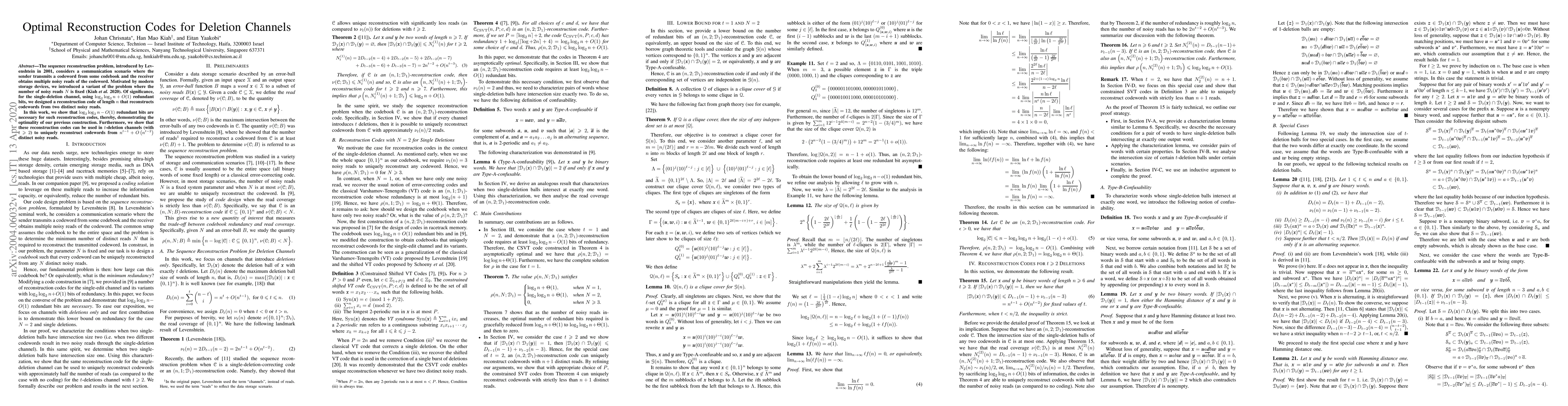Reconstruction codes can uniquely reconstruct codewords from noisy reads with a certain number of redundant bits, optimizing the reconstruction process for storage devices. This work demonstrates that a specific number of redundant bits is necessary for such reconstruction.