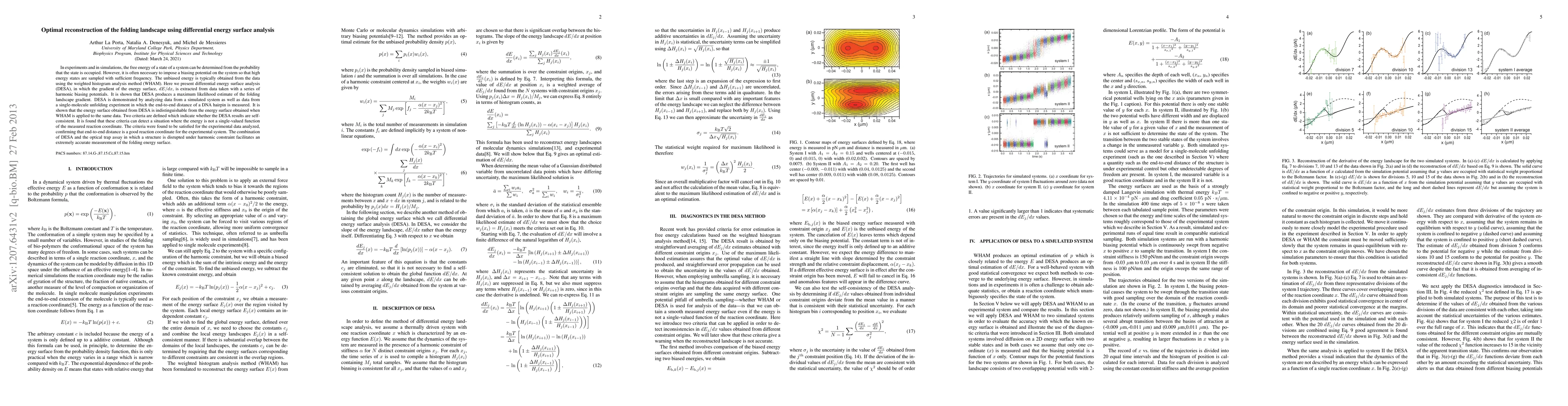 In experiments and in simulations, the free energy of a state of a system can be determined from the probability that the state is occupied. However, it is often necessary to impose a biasing potential on the system so that high energy states are sampled with sufficient frequency. The unbiased energy is typically obtained from the data using the weighted histogram analysis method (WHAM). Here we present differential energy surface analysis (DESA), in which the gradient of the energy surface, dE/dx, is extracted from data taken with a series of harmonic biasing potentials. It is shown that DESA produces a maximum likelihood estimate of the folding landscape gradient. DESA is demonstrated by analyzing data from a simulated system as well as data from a single-molecule unfolding experiment in which the end-to-end distance of a DNA hairpin is measured. It is shown that the energy surface obtained from DESA is indistinguishable from the energy surface obtained when WHAM is applied to the same data. Two criteria are defined which indicate whether the DESA results are self-consistent. It is found that these criteria can detect a situation where the energy is not a single-valued function of the measured reaction coordinate. The criteria were found to be satisfied for the experimental data analyzed, confirming that end-to-end distance is a good reaction coordinate for the experimental system. The combination of DESA and the optical trap assay in which a structure is disrupted under harmonic constraint facilitates an extremely accurate measurement of the folding energy surface.