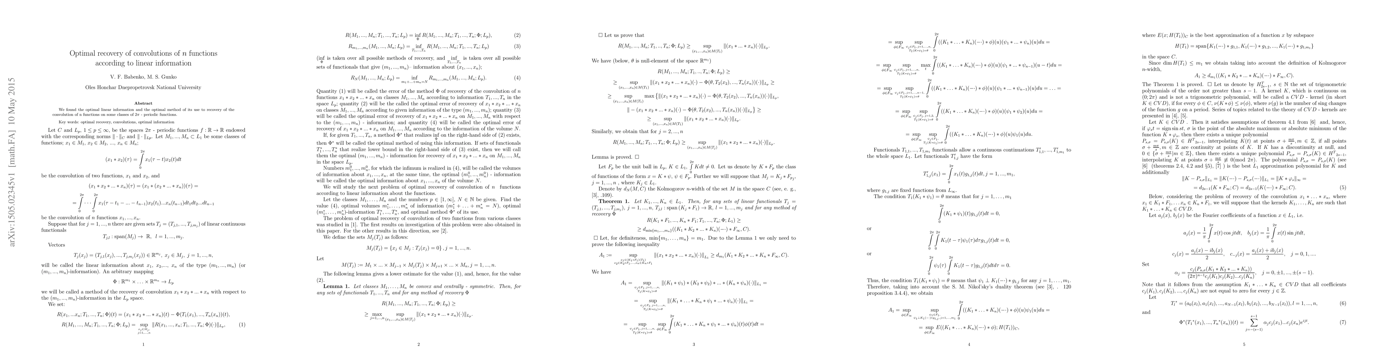 Summary: The paper identifies the optimal linear information and the best method to utilize it for recovering the convolution of n periodic functions, focusing on specific classes of $2\pi$-periodic functions. This approach provides the most efficient recovery strategy.