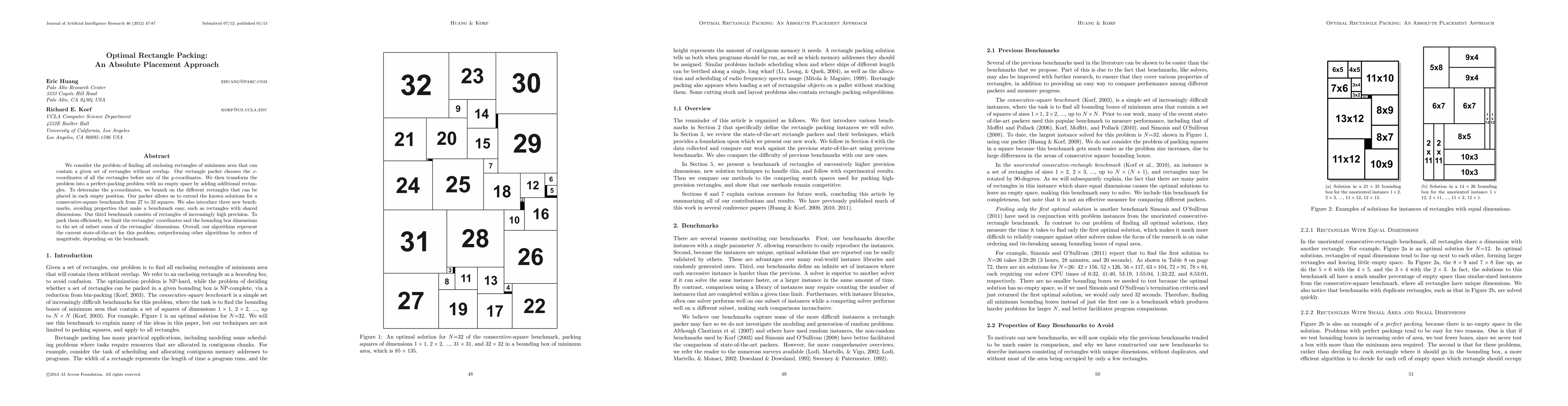 Researchers developed an optimal rectangle packing algorithm that can efficiently pack a given set of rectangles into minimum area enclosing rectangles, outperforming existing algorithms with orders of magnitude improvements in certain benchmarks.