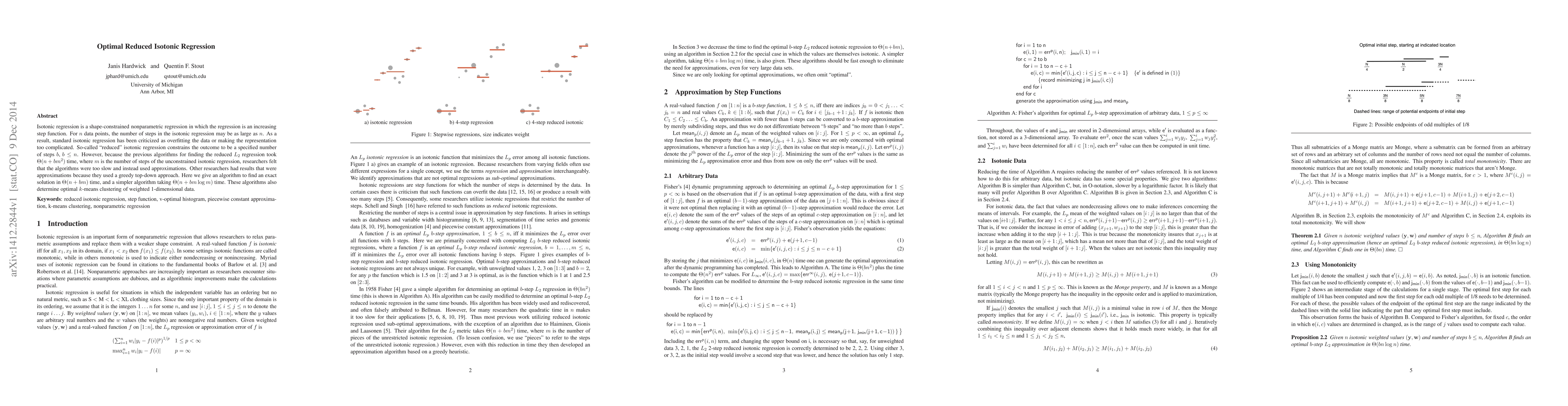 This paper proposes efficient algorithms for "reduced" isotonic regression, which constrains the regression to a specified number of steps, addressing the issue of overfitting in standard isotonic regression. The authors present exact solutions with runtimes of $\Theta(n+bm)$ and $\Theta(n+b m \log m)$, outperforming previous $\Theta(n+bm^2)$ time methods.