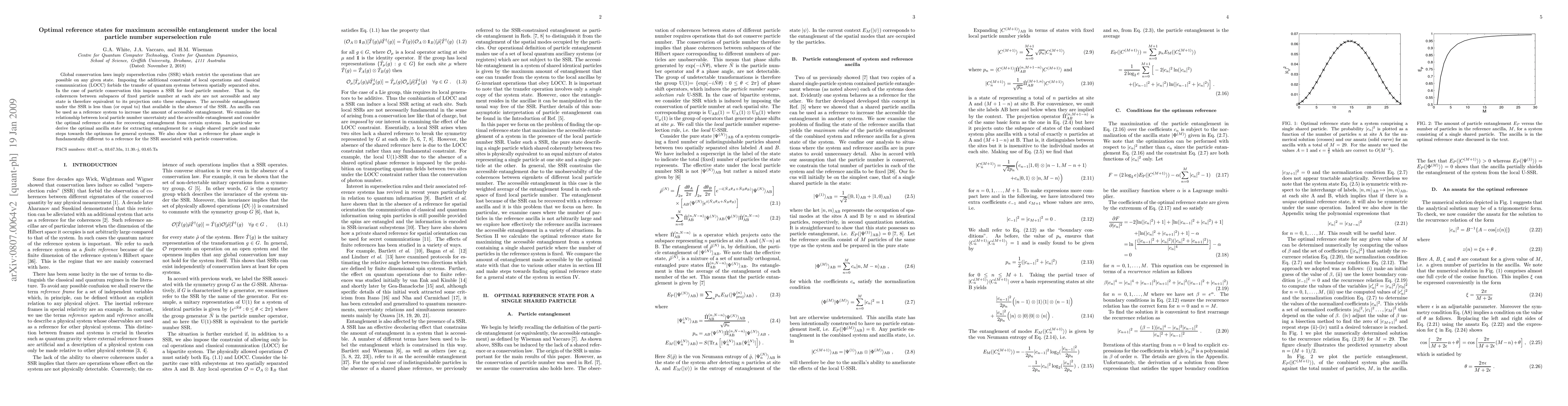This paper investigates the optimal reference states that maximize accessible entanglement under the local particle number superselection rule, demonstrating that ancilla states can enhance entanglement despite the SSR constraints. The authors derive the best ancilla state for a single shared particle and outline strategies for general systems.