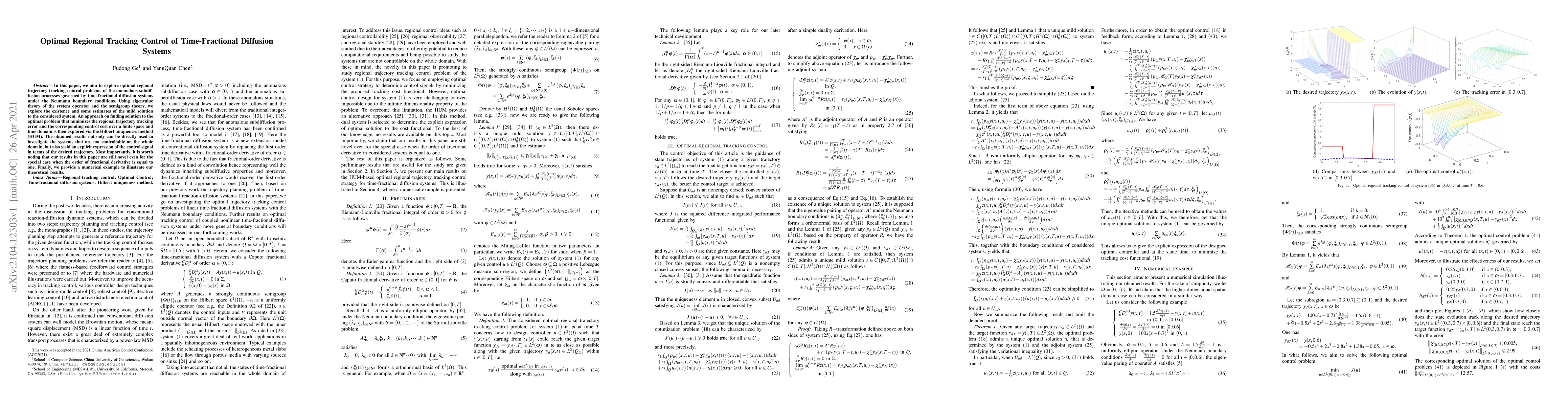This paper investigates optimal regional control for time-fractional diffusion systems with anomalous subdiffusion, employing eigenvalue theory and semigroup theory to find mild solutions. It utilizes the Hilbert uniqueness method to minimize tracking error and control cost, providing explicit control signal expressions and novel results even for first-order systems, supplemented by a numerical example.