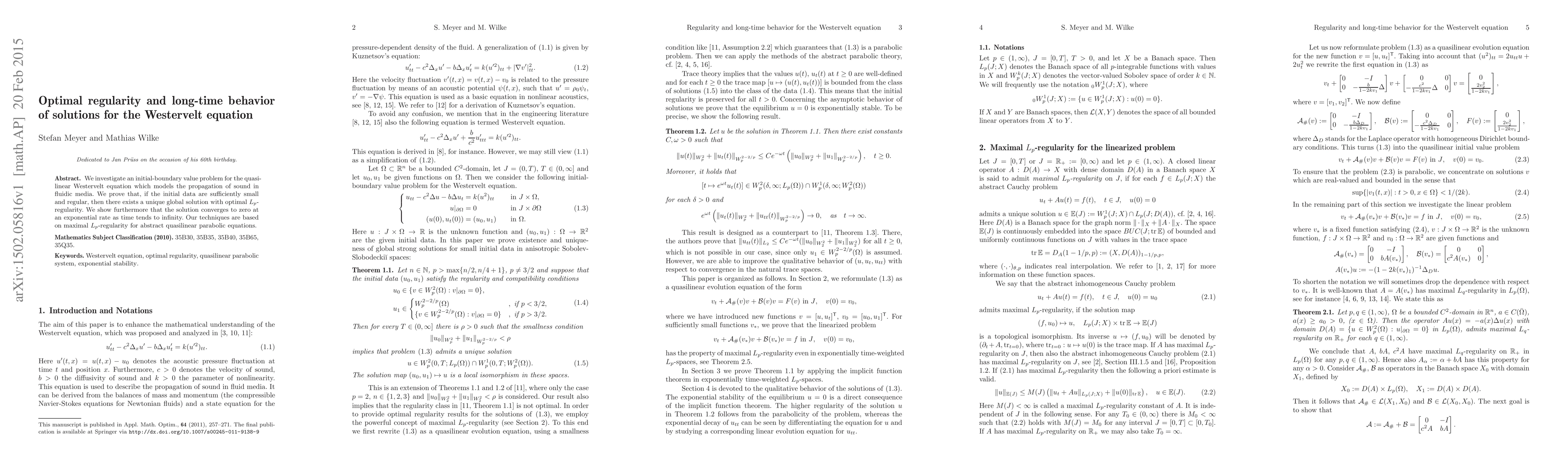 We investigate an initial-boundary value problem for the quasilinear Westervelt equation which models the propagation of sound in fluidic media. We prove that, if the initial data are sufficiently small and regular, then there exists a unique global solution with optimal $L_p$-regularity. We show furthermore that the solution converges to zero at an exponential rate as time tends to infinity. Our techniques are based on maximal $L_p$-regularity for abstract quasilinear parabolic equations.