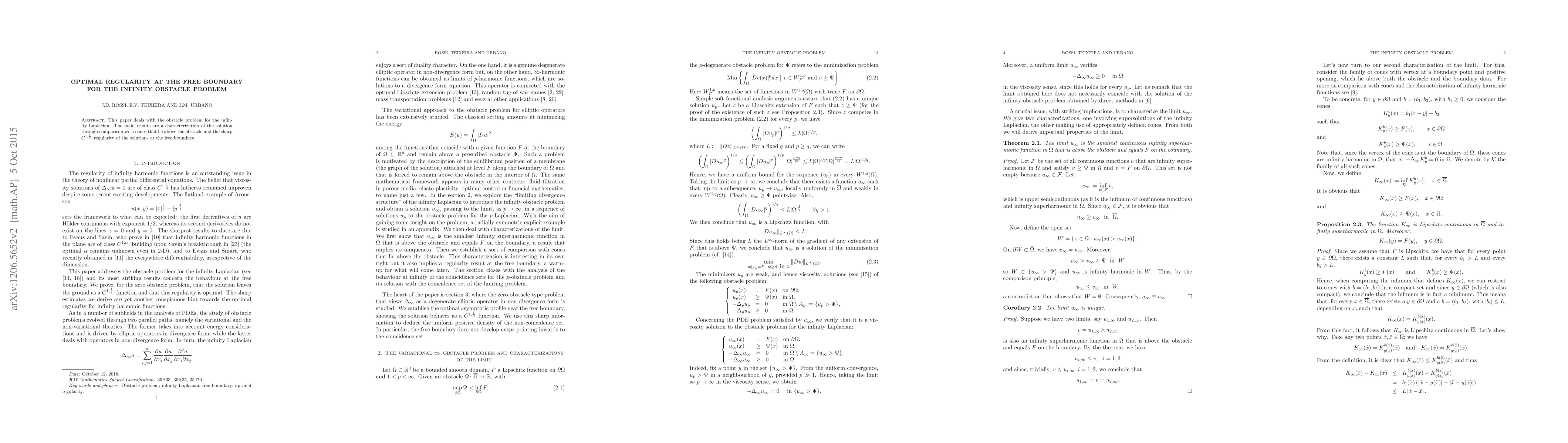 This paper characterizes the solution to the infinity obstacle problem via comparison with cones, establishing sharp $C^{1,1/3}$-regularity at the free boundary. The results provide a detailed understanding of the behavior of solutions near the free boundary.