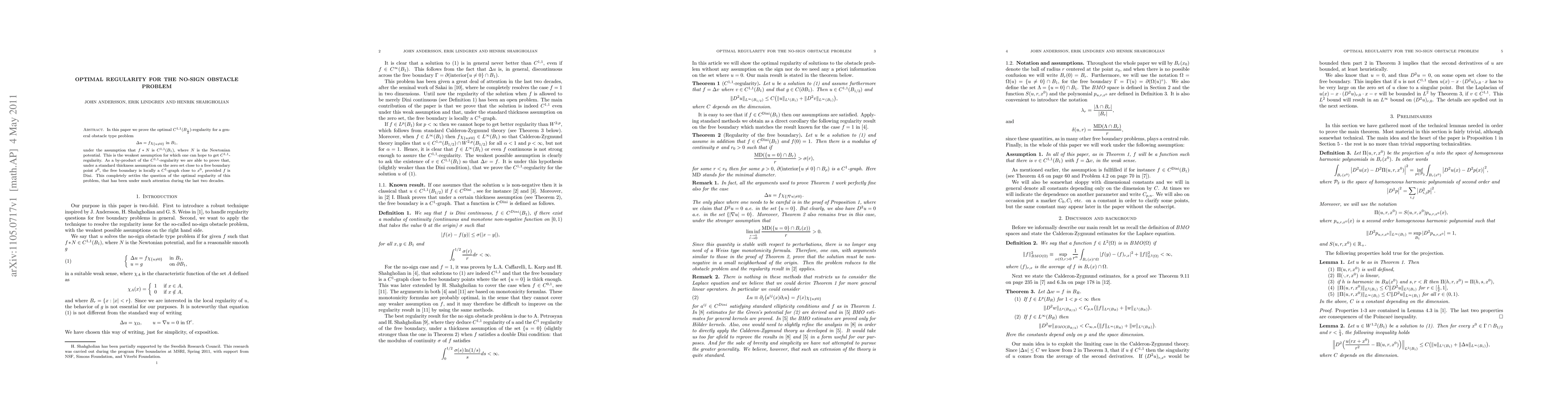 This paper establishes optimal $C^{1,1}$-regularity for the no-sign obstacle problem under minimal assumptions, proving that the free boundary is locally a $C^1$-graph under standard thickness conditions. This resolves the long-standing question regarding the optimal regularity for such problems.