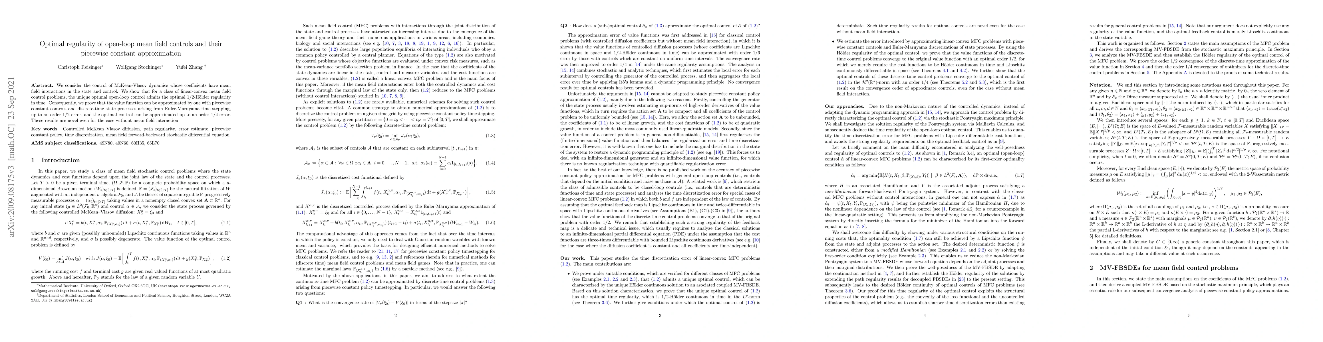 We consider the control of McKean-Vlasov dynamics whose coefficients have mean field interactions in the state and control. We show that for a class of linear-convex mean field control problems, the unique optimal open-loop control admits the optimal 1/2-H\"{o}lder regularity in time. Consequently, we prove that the value function can be approximated by one with piecewise constant controls and discrete-time state processes arising from Euler-Maruyama time stepping, up to an order 1/2 error, and the optimal control can be approximated up to an order 1/4 error. These results are novel even for the case without mean field interaction.