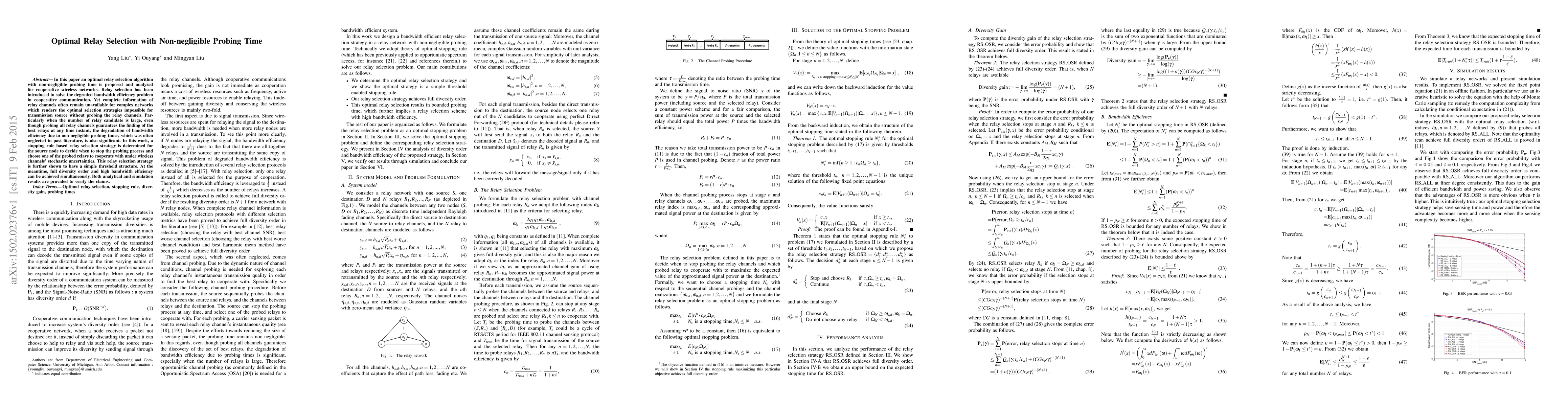 In this paper an optimal relay selection algorithm with non-negligible probing time is proposed and analyzed for cooperative wireless networks. Relay selection has been introduced to solve the degraded bandwidth efficiency problem in cooperative communication. Yet complete information of relay channels often remain unavailable for complex networks which renders the optimal selection strategies impossible for transmission source without probing the relay channels. Particularly when the number of relay candidate is large, even though probing all relay channels guarantees the finding of the best relays at any time instant, the degradation of bandwidth efficiency due to non-negligible probing times, which was often neglected in past literature, is also significant. In this work, a stopping rule based relay selection strategy is determined for the source node to decide when to stop the probing process and choose one of the probed relays to cooperate with under wireless channels' stochastic uncertainties. This relay selection strategy is further shown to have a simple threshold structure. At the meantime, full diversity order and high bandwidth efficiency can be achieved simultaneously. Both analytical and simulation results are provided to verify the claims.