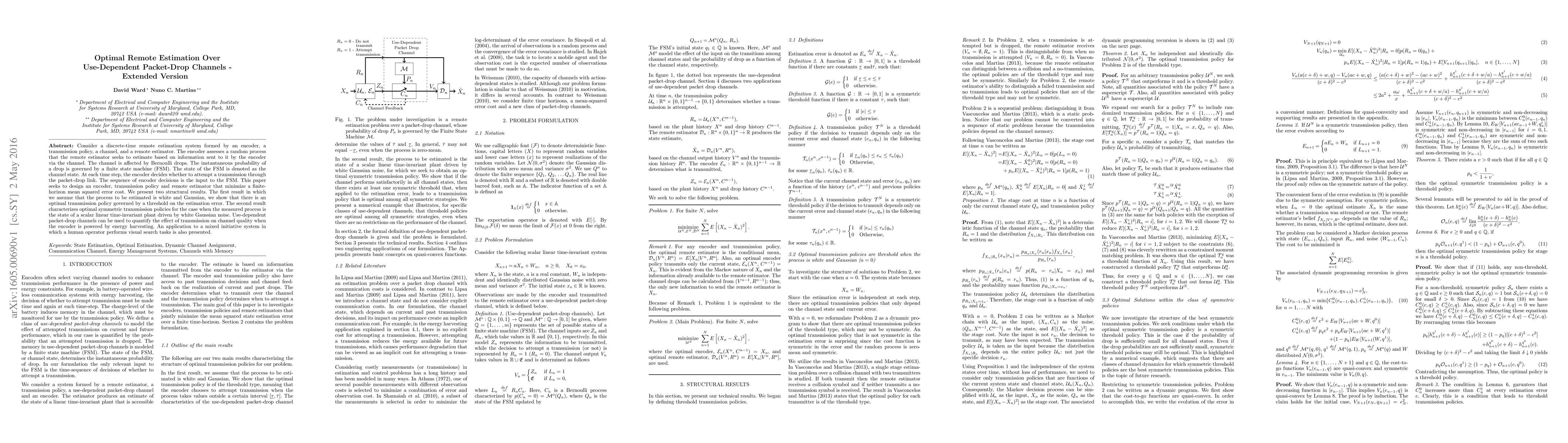This paper explores optimal remote estimation in systems with use-dependent packet-drop channels, focusing on minimizing mean squared error. It presents two structural results: one for white Gaussian processes and another for scalar linear time-invariant systems driven by white Gaussian noise, both revealing optimal transmission policies based on estimation error thresholds. An application to a mixed initiative system involving human visual search tasks is also discussed.