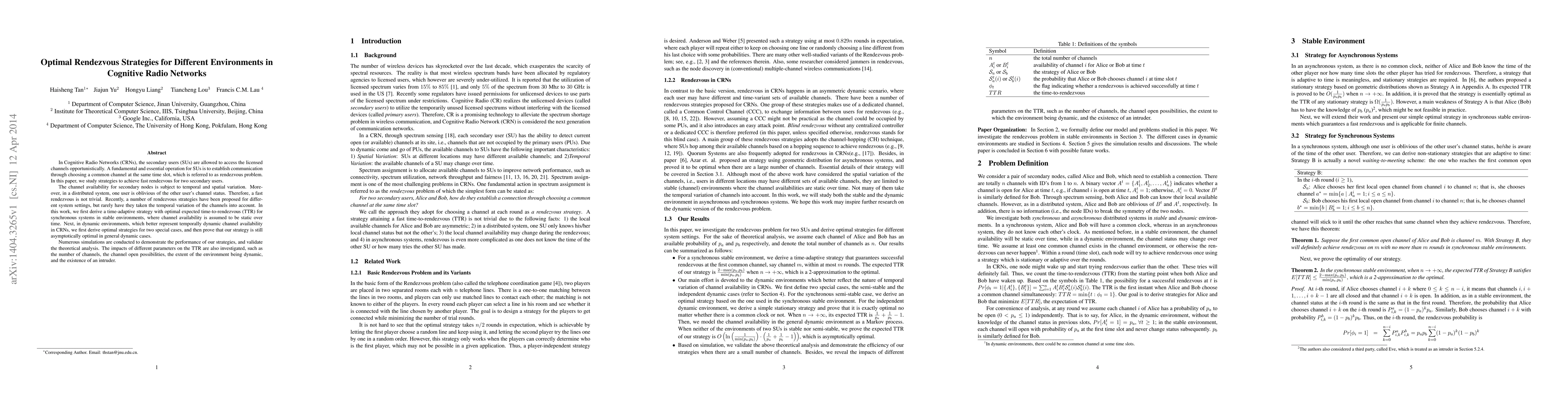 This paper proposes optimal rendezvous strategies for secondary users in Cognitive Radio Networks, focusing on both stable and dynamic environments. It develops time-adaptive strategies to achieve fast rendezvous, demonstrating both theoretical and simulation-based performance evaluations.