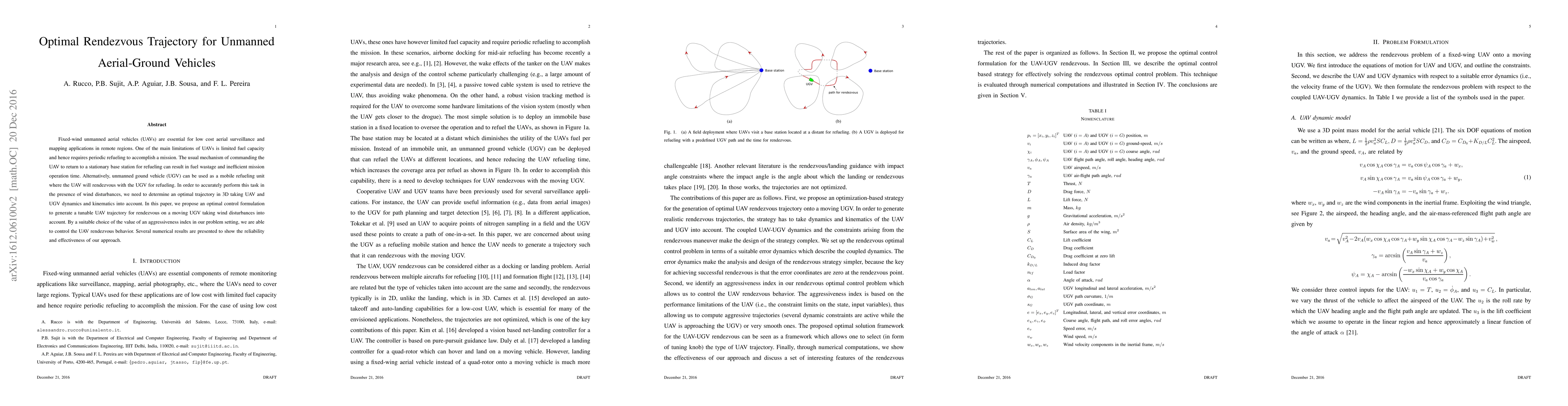 The paper presents an optimal control-based strategy for UAV-UGV rendezvous, incorporating an aggressiveness index and a desired state-input curve, along with a numerical solution using PRONTO.