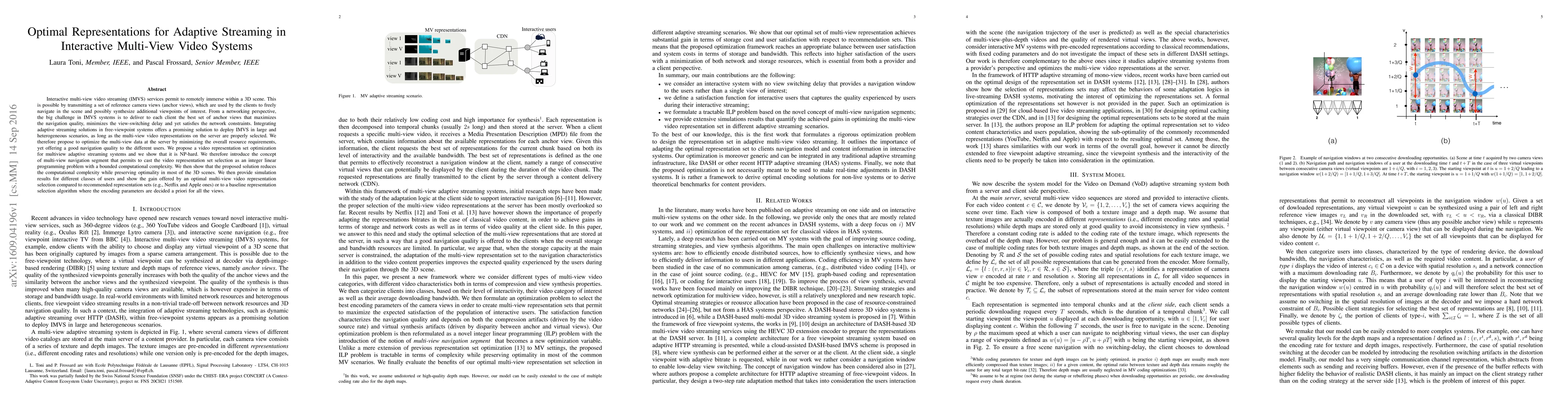 This paper proposes an optimization method for selecting the best set of anchor views in interactive multi-view video streaming systems to maximize navigation quality and minimize delays while satisfying network constraints. It introduces a multi-view navigation segment concept to formulate an integer linear programming problem, demonstrating reduced complexity and optimal performance in most scenarios.