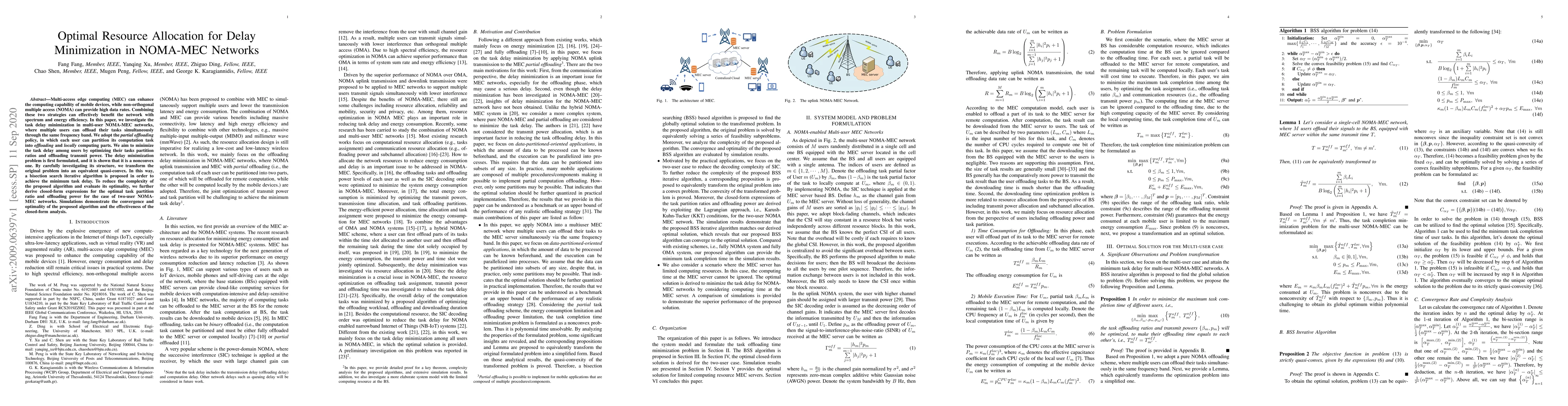 This paper investigates optimal resource allocation for minimizing delay in NOMA-MEC networks, proposing an algorithm that optimizes task partition ratios and offloading transmit power to minimize delay among users.