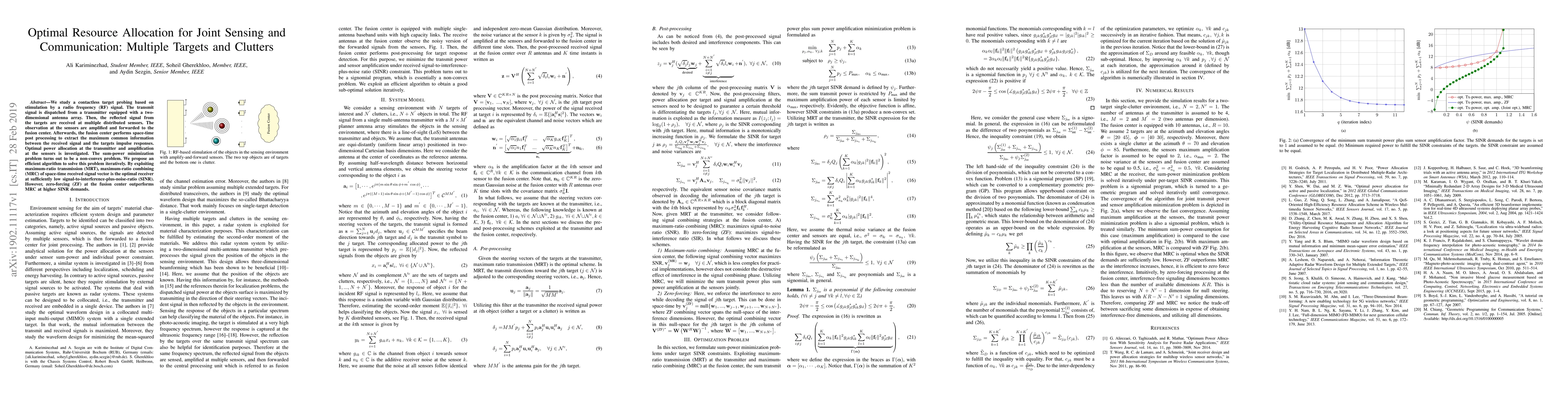 We study a contactless target probing based on stimulation by a radio frequency (RF) signal. The transmit signal is dispatched from a transmitter equipped with a two-dimensional antenna array. Then, the reflected signal from the targets are received at multiple distributed sensors. The observation at the sensors are amplified and forwarded to the fusion center. Afterwards, the fusion center performs space-time post processing to extract the maximum common information between the received signal and the targets impulse responses. Optimal power allocation at the transmitter and amplification at the sensors is investigated. The sum-power minimization problem turns out to be a non-convex problem. We propose an efficient algorithm to solve this problem iteratively. By exploiting maximum-ratio transmission (MRT), maximum-ratio combining (MRC) of space-time received signal vector is the optimal receiver at sufficiently low signal-to-interference-plus-noise-ratio (SINR). However, zero-forcing (ZF) at the fusion center outperforms MRC at higher SINR demands.